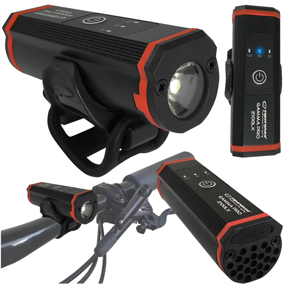 Lampka rowerowa LED 2w1 z funkcją latarki2 w 1 profesjonalna lampka rowerowa i latarka Esperanza GAMMA PRO 2100 lx posiada mocną białą diodę LED typu CREE T6, emitującą silne światło o mocy 2100 lx w trybie FULL POWER. Super mocne światło równomiernie doświetli drogę w odległości do 200m przed tobą i jest widoczne z ponad 2000m. |