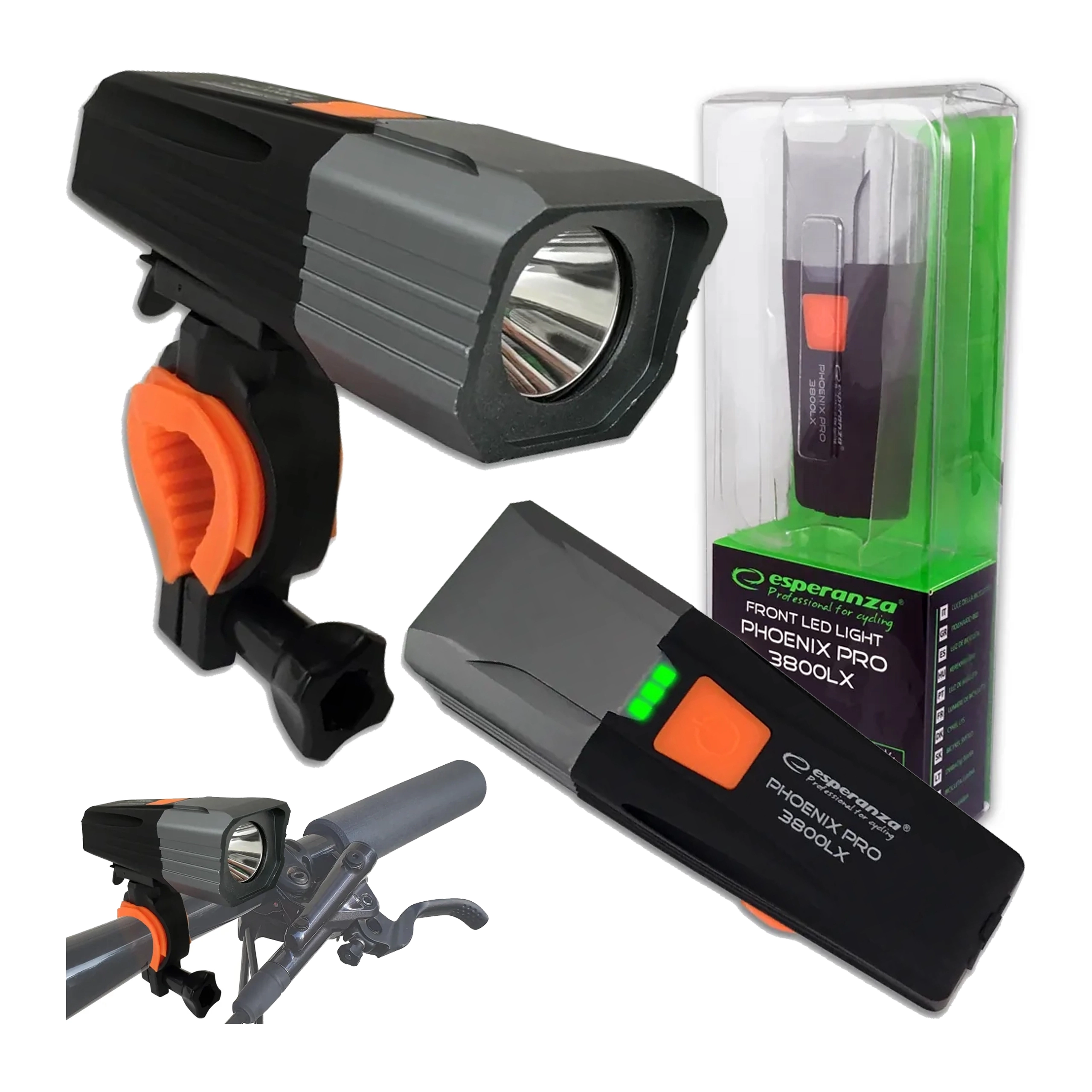 Lampka rowerowa LEDProfesjonalna lampka rowerowa Esperanza PHOENIX PRO 3800 lx posiada mocną białą diodę LED typu CREE T6, emitującą silne światło o mocy 3800 lx w trybie FULL POWER. Super mocne światło równomiernie doświetli drogę w odległości do 200m przed tobą i jest widoczne z ponad 2000m. |