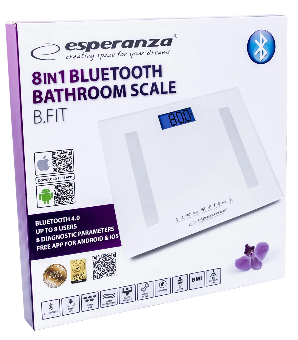 Analityczna waga łazienkowa 8w1 Esperanza B.FIT 180 kg Bluetooth biała