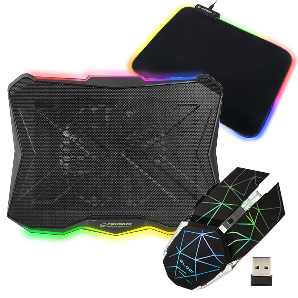 Podkładka posiada efektowne podświetlenie LED RGB. Wbudowany niezwykle cichy wentylator usuwa ciepło wytwarzane pod spodem notebooka, chłodząc go i obniżając temperaturę pracy jego podzespołów, co zapewnia stabilną pracę. Nie wymaga zewnętrznych źródeł zasilania – zasilana z portu USB notebooka. Ponadto nie wymaga instalacji, wystarczy wpiąć kabel zasilający do USB laptopa i podstawka jest gotowa do użytku. Trwała, wygodna i łatwa w przenoszeniu.