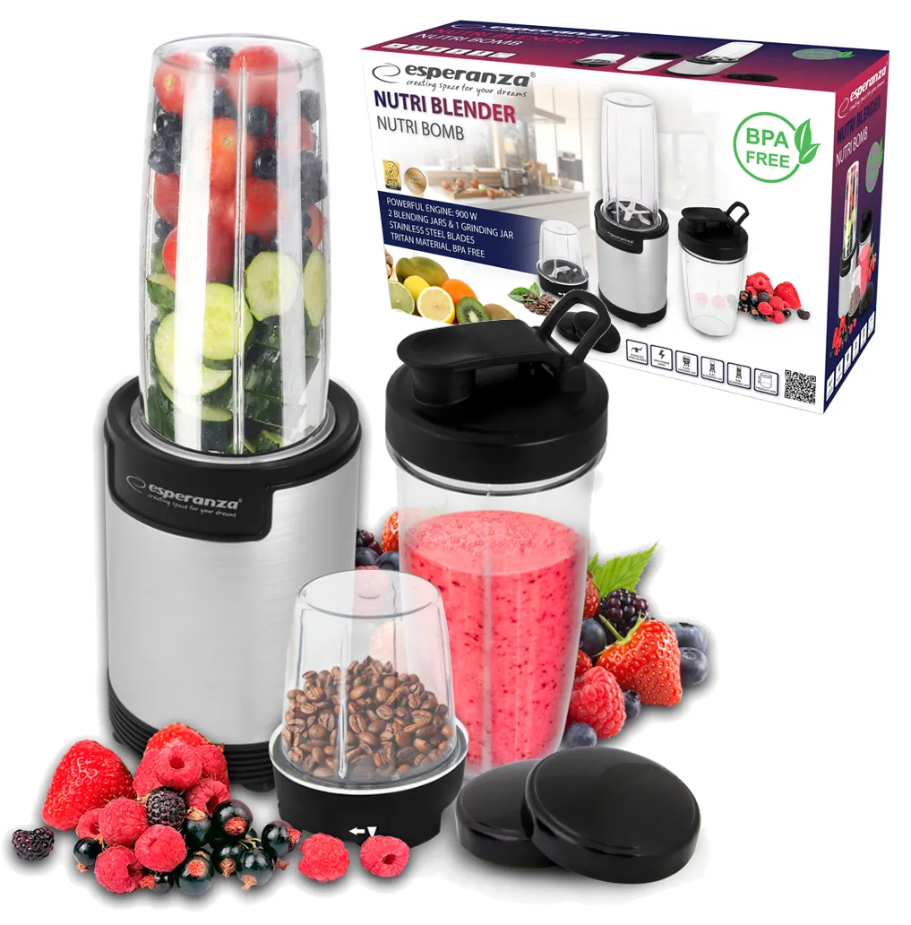 NutriBlender Esperanza NUTRI BOMBNutriblender Esperanza NUTRI BOMB wyposażony jest w mocny i trwały silnik, dzięki czemu może wydobyć składniki odżywcze głęboko ukryte w nasionach, ziarnach, orzechach, owocach, warzywach i innych pokarmach. Doskonale sprawdza się nie tylko w przygotowywaniu zup, posiłków dla niemowląt, sosów, koktajli i innych dań, ale również pomoże Ci odzyskać witalność i energię. Nutriblender Esperanza NUTRI BOMB w każdej kuchni wygląda atrakcyjnie i stylowo! To idealne rozwiązanie dla tych, którzy zaczynają dzień od zdrowego śniadania w postaci koktajlu owocowego lub warzywnego, smoothie lub po prostu dla tych, którzy cenią sobie szybkie przygotowanie dań w kuchni. Na jego korzyść dodatkowo przemawiają wysoka jakość wykonania, nowoczesny design i funkcjonalność! Jak również to, że kubek z napojem możesz zabrać ze sobą do pracy lub na trening albo możesz przechowywać go bezpiecznie w lodówce. Po prostu przygotuj ulubiony napój i ciesz się jego smakiem! |