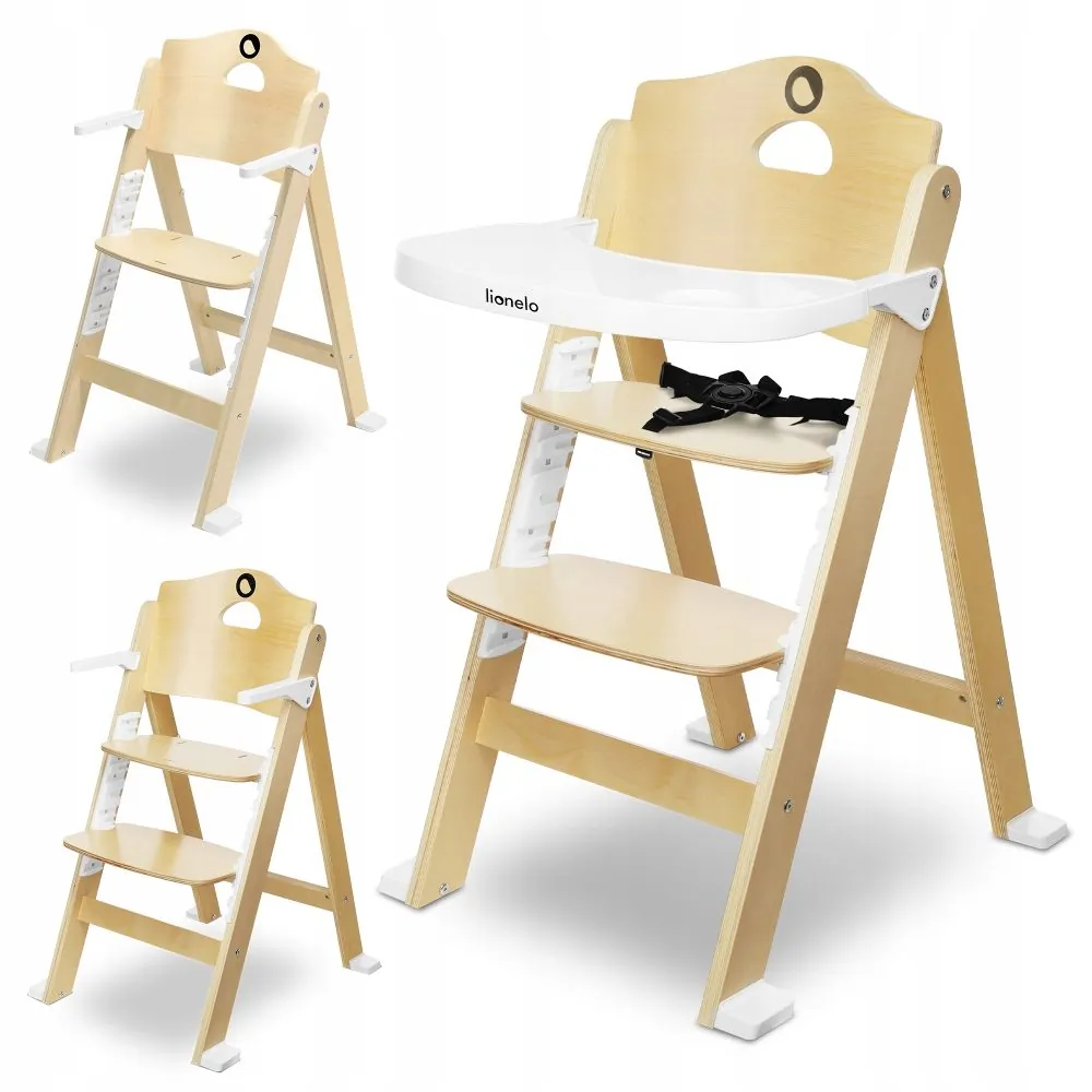 Drewniane krzesełko do karmienia 3 w 1 Lionelo Floris - naturalne drewno