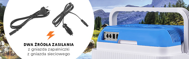 Dwa źródła zasilaniaLodówka została wyposażona nie w jedno, lecz w dwa niezależne źródła zasilania. Urządzenie możesz zasilać z samochodowego gniazda zapalniczki lub bezpośrednio z gniazda sieciowego. Dzięki temu lodówki można używać bez problemu w samochodzie, na kempingu, ognisku, w domu — gdziekolwiek zechcesz. |