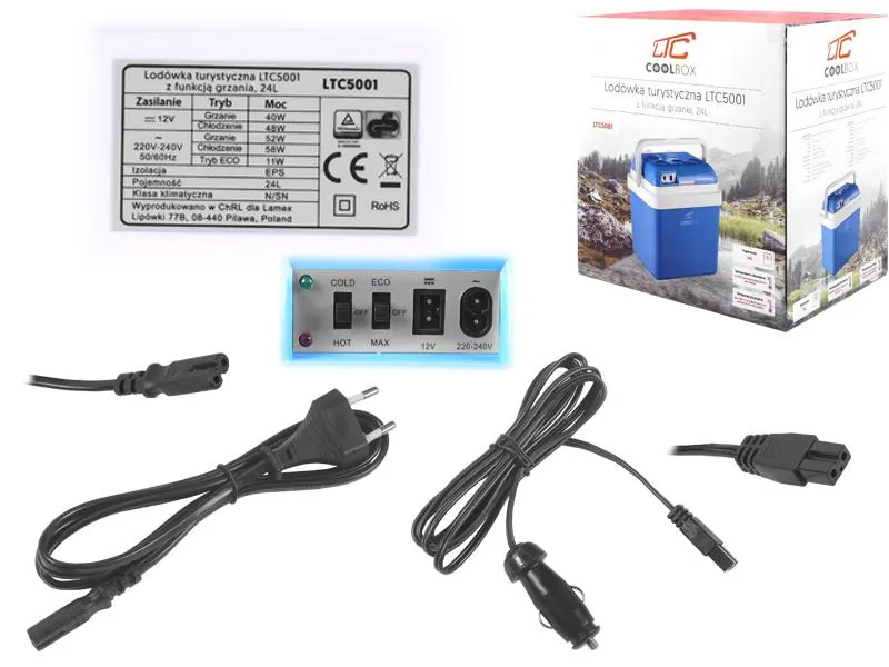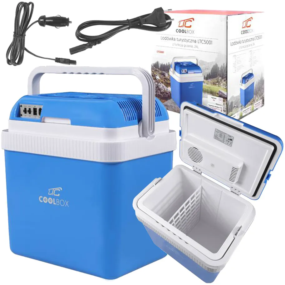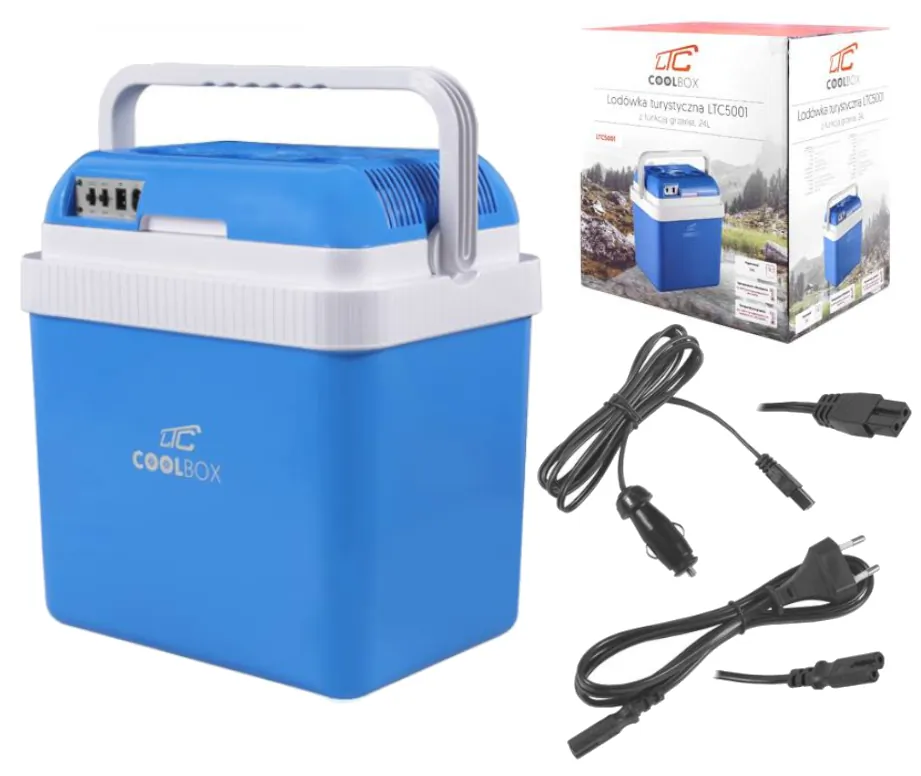Elektryczna lodówka turystycznaWysokiej jakości lodówka turystyczna marki LTC — idealny towarzysz każdej przejażdżki samochodowej. Pojemność 24 litrów i możliwość zasilania z gniazda zapalniczki czyni ten produkt świetnym dodatkiem do każdego samochodu. Wbudowana funkcja grzania oznacza, że możesz użyć LTC5001 również do utrzymywania produktów w cieple. Do izolacji cieplnej wykorzystano EPS (polistyren ekspandowany), oznacza to bardzo dobrą izolację termiczną urządzenia.