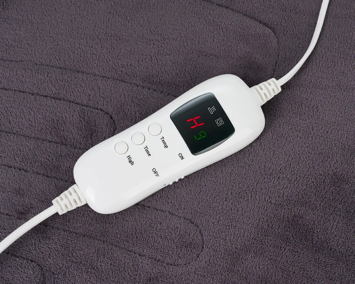 ✅ Intuicyjne użytkowanieDużą zaletą naszego produktu jest to, że jest on naprawdę prosty w użytkowaniu. Zapewnia szybkie i równomiernie rozprowadzenie ciepła bez konieczności wykonywania skomplikowanych czynności. Odłączany przewód zasilający z pilotem LCD pozwala na łatwą kontrolę pracy produktu. Przycisk ustawienia temperatury pozwala ustawić ją na 7 różnych poziomach. Można również samodzielnie ustawić czas pracy produktu od 1 do 9 godzin. Jeśli od razu chcemy uzyskać wysoką temperaturę grzania wystarczy nacisnąć przycisk „HIGH”. Ochrona przed przegrzaniem sprawia, że pozycja wysokiej temperatury automatycznie zmieni się na niską po upływie 1 godziny. Koc wyposażony jest również w ochronę przepięciową! |