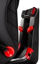 Montaż fotelika za pomocą samochodowych pasów bezpieczeństwa jest bardzo prosty i szybki – pomagają w tym specjalne, wyraźnie oznaczone prowadnice.