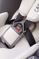 Dodatkowe antypoślizgowe poduszki na pasach dbają o to, by zabezpieczenia zawsze miały właściwe ułożenie. Dzięki miękkiemu materiałowi nakładki zapobiegają otarciom wrażliwej skóry dziecka.