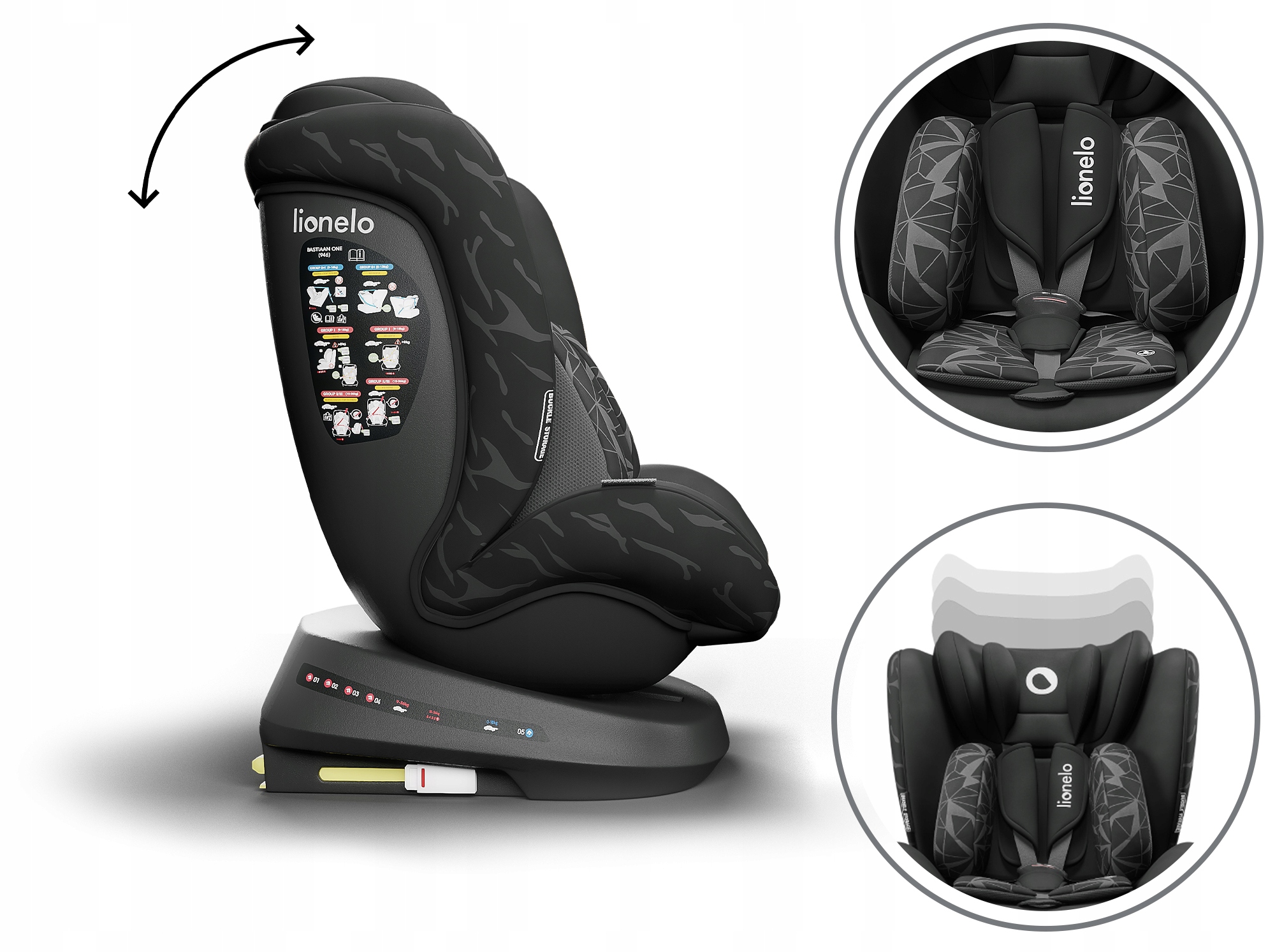 Lionelo Bastiaan ONE to fotelik, który udowadnia, że komfort podróży może iść w parze z maksymalnym bezpieczeństwem. Baza fotelika umożliwia obrót o 360 stopni. Idealne dopasowanie zapewnia regulacja oparcia (przy ustawieniu przodem do kierunku jazdy), 7-stopniowa regulacja zagłówka oraz antypoślizgowe nakładki na pas.