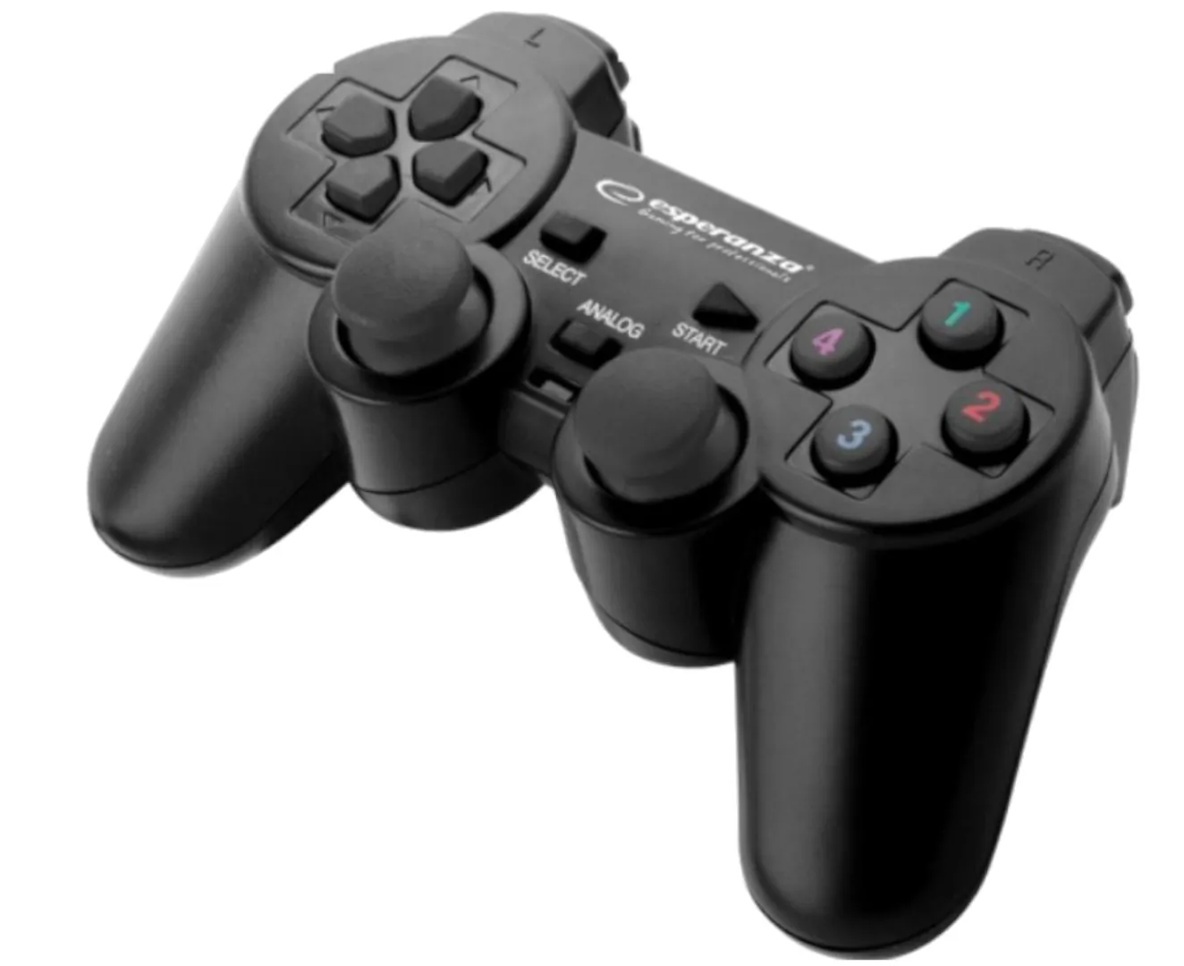 Gamepad WARRIOR został wyposażony w 12 przycisków akcji, w tym 2 przyciski w manipulatorach oraz 2 analogowe manipulatory – to dzięki nim uzyskasz pełną kontrolę w grze! Ponadto posiada 2 tryby pracy - analogowy i cyfrowy. 8 kierunkowy krzyżak pozwoli Ci w pełni swobodnie kontrolować akcję gry.