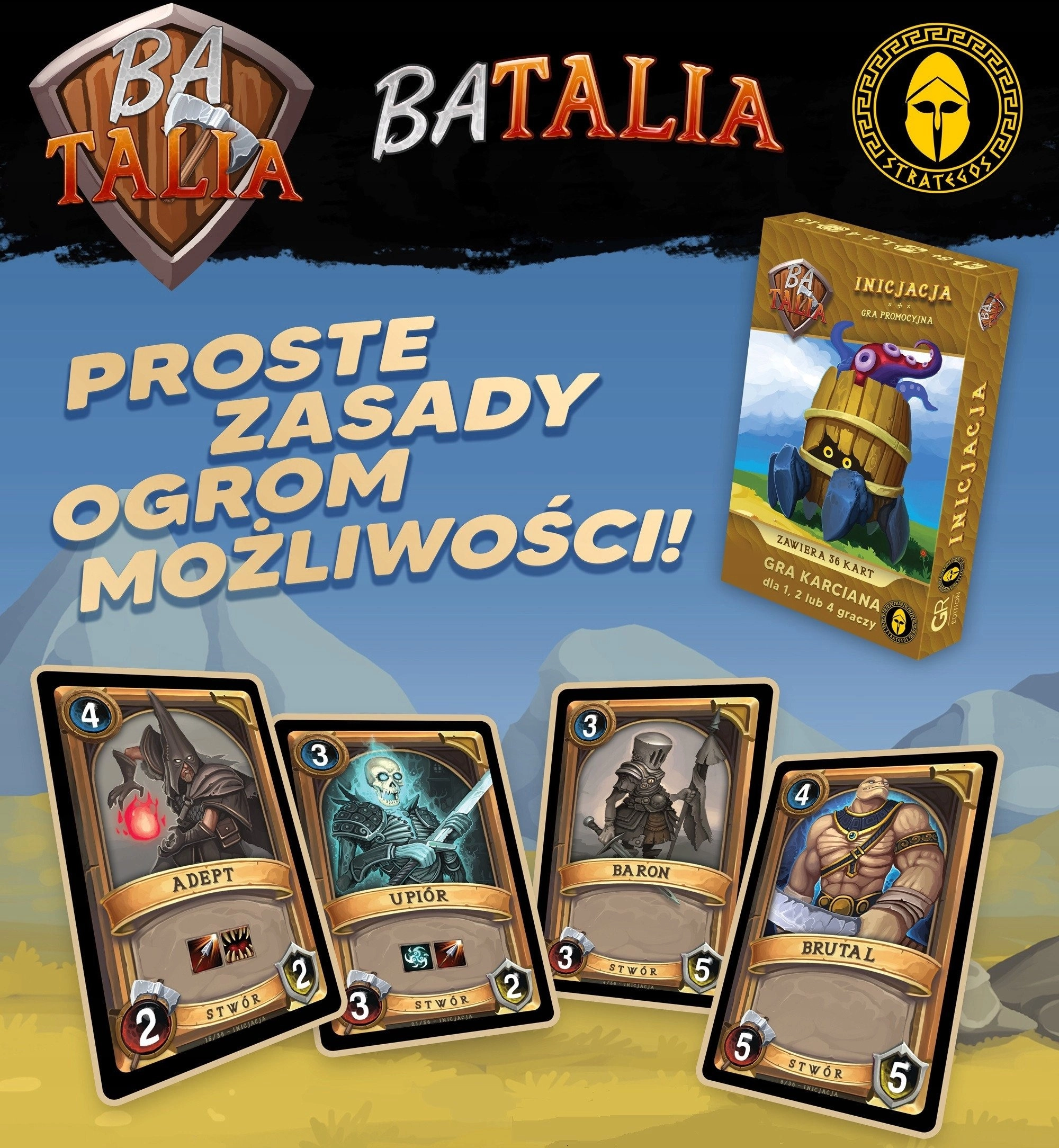 Batalia: Potop + Inicjacja to polska wersja popularnej gry karcianej „Clash of Decks”, oferująca emocjonującą rozgrywkę dla graczy w różnym wieku. Proste zasady i dynamiczna akcja sprawiają, że gra jest świetnym sposobem na wspólne spędzanie czasu z rodziną i przyjaciółmi.