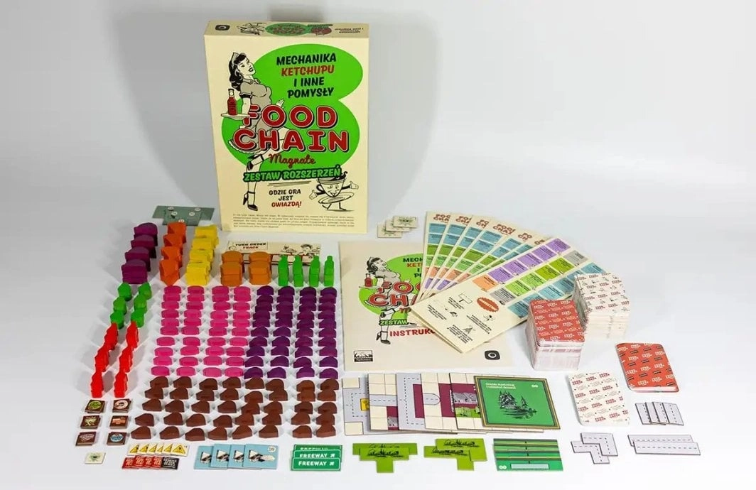 Dodatek Mechanika Ketchupu i Inne Pomysły rozszerza grę Food Chain Magnate o aż 17 nowych elementów, które można włączać do rozgrywki w dowolnych konfiguracjach. Dzięki temu każda partia może wyglądać inaczej, oferując większą różnorodność i świeże wyzwania.