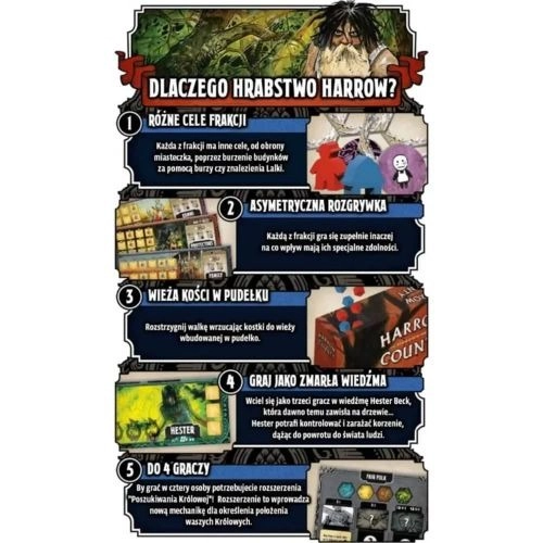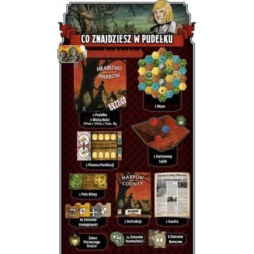 Gra planszowa „Hrabstwo Harrow” w edycji deluxe to niezwykła propozycja dla miłośników strategii i emocjonujących pojedynków. Stworzona przez Jaya Cormiera i Shada Millera, przenosi graczy do tajemniczego, pełnego grozy uniwersum inspirowanego komiksem o tym samym tytule. Czeka tu niezwykła podróż, w której każda decyzja ma znaczenie i może zadecydować o losie całej frakcji.