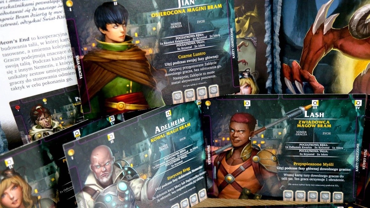 Aeon’s End to kooperacyjna gra karciana wykorzystująca mechanikę budowania talii. Jej wyróżnikiem jest brak tasowania kart na jakimkolwiek etapie rozgrywki, co nadaje każdej decyzji strategiczną wagę. Dodatkowo losowa kolejność tur graczy oddaje nieprzewidywalność i chaos prawdziwej bitwy.