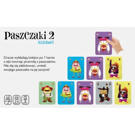 „Paszczaki 2 – Akrobaci” to druga odsłona popularnej serii gier „Paszczaki”. Choć należy do tego samego uniwersum, oferuje zupełnie inne zasady rozgrywki niż pierwsza część, dzięki czemu stanowi świeże i samodzielne doświadczenie.