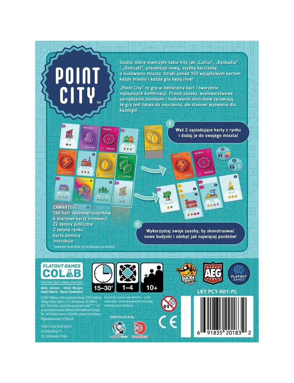 Point City to gra przeznaczona dla 1–4 graczy, w której kluczowe znaczenie ma mądre dobieranie kart i planowanie rozwoju własnego miasta.