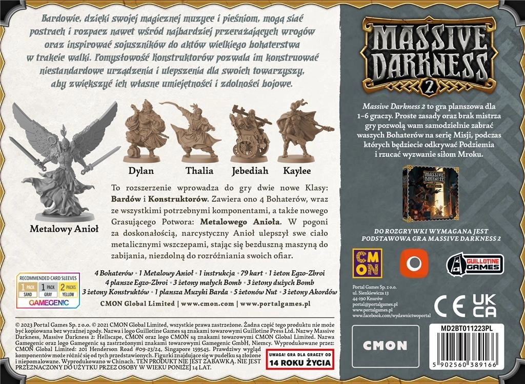 Dodatek Bardowie i Konstruktorzy kontra Metalowy Anioł do gry Massive Darkness 2 wzbogaca rozgrywkę o dwie zupełnie nowe klasy bohaterów: Bardów oraz Konstruktorów. Każda z nich oferuje unikalne umiejętności i świeże możliwości taktyczne, które pozwalają graczom odkrywać nowe strategie podczas przygód.