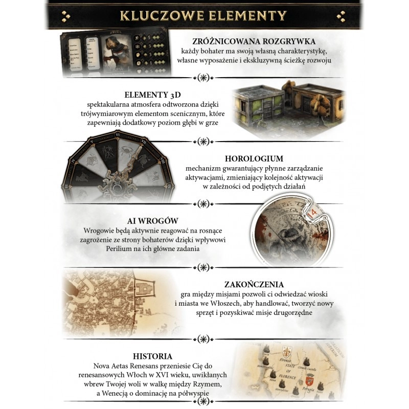 Nova Aetas: Renaissance zachwyca dopracowanymi, szczegółowymi figurkami oraz komponentami najwyższej jakości, które potęgują wrażenie uczestnictwa w renesansowej przygodzie.