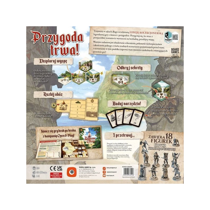 Bezludna wyspa staje się teraz łatwiejsza i przyjemniejsza w eksploracji! Robinson Crusoe: Przygoda na Przeklętej Wyspie to popularna gra kooperacyjna dla 1–4 graczy, stworzona przez Ignacego Trzewiczka. Edycja Kolekcjonerska wzbogaca klasyczną wersję o Kampanię Wprowadzającą, która stopniowo wprowadza graczy w zasady, zestaw 18 starannie wykonanych figurek oraz plastikową wypraskę. Całość mieści się w nowym, większym pudełku, zaprojektowanym tak, aby pomieścić wszystkie elementy gry.