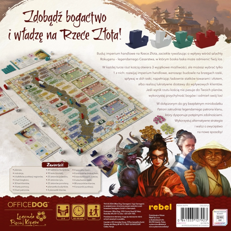 W grze „Rzeka Złota” wcielasz się w handlarza powiązanego z jednym z legendarnych klanów samurajów. Twoim celem jest maksymalizacja zysków poprzez inwestowanie w porty, rynki i świątynie lub skupienie się na żegludze, realizując kontrakty dostawcze. To od Ciebie zależy, jaką drogę obierzesz – czy zbudujesz potężne imperium handlowe, czy staniesz się mistrzem transportu i kontraktów.