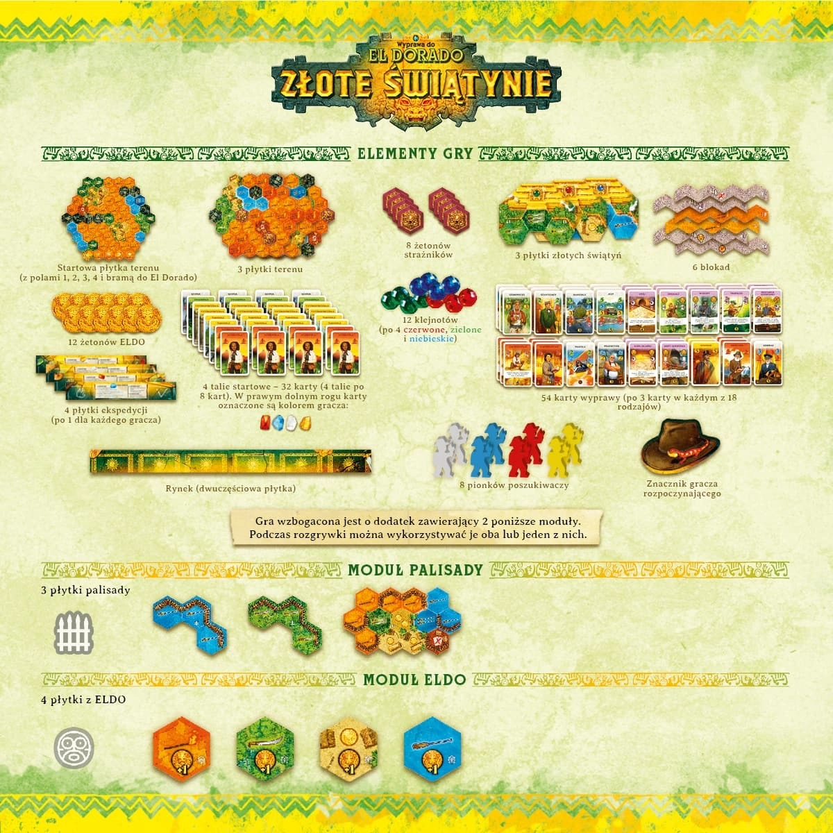 „Wyprawa do El Dorado: Złote Świątynie” to niezależna gra, a nie dodatek. Można ją jednak połączyć z grą „Wyprawa do El Dorado”. W takim wariancie rozegracie wielką przygodę: najpierw wyruszycie na poszukiwanie El Dorado, a po jego odnalezieniu rozpoczniecie walkę o skarby i spróbujecie wydostać się z tej legendarnej krainy.