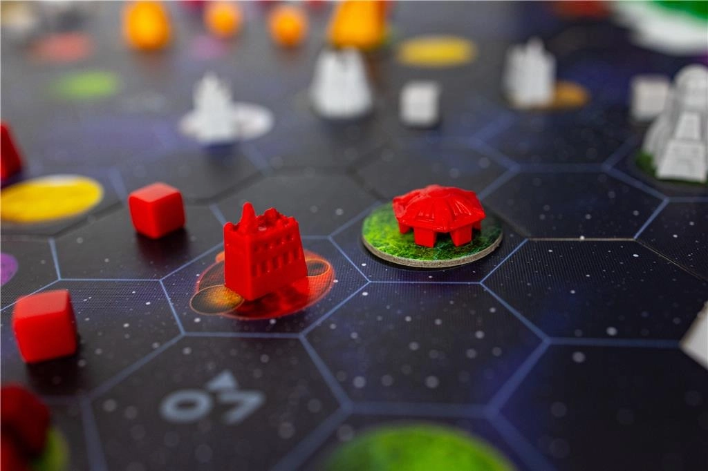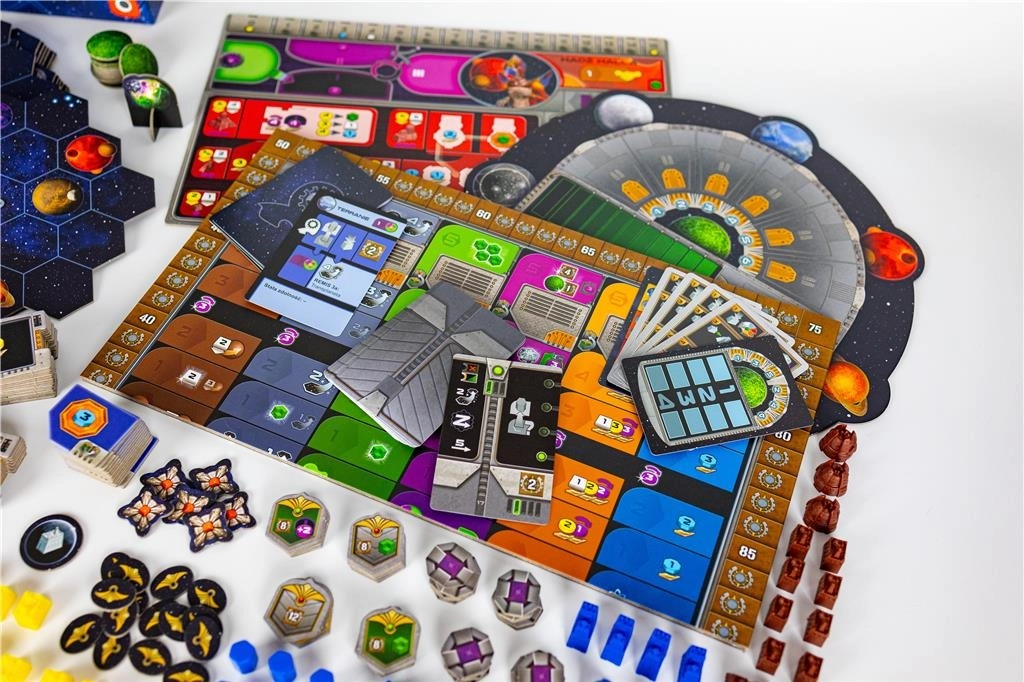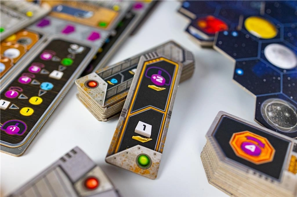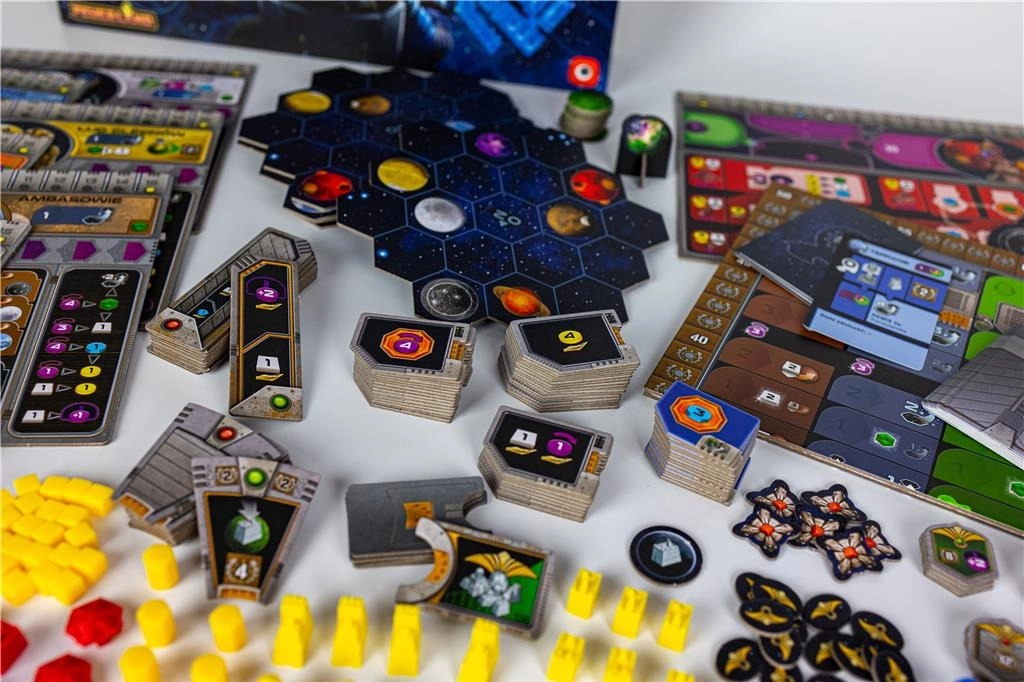 Gra toczy się na planszy stworzonej z losowo rozmieszczonych sektorów kosmosu. Taki układ gwarantuje unikalny rozkład planet w każdej rozgrywce, a jednocześnie pozwala idealnie dopasować obszar gry do liczby uczestników. Za każdym razem czeka cię zupełnie inny układ strategiczny.