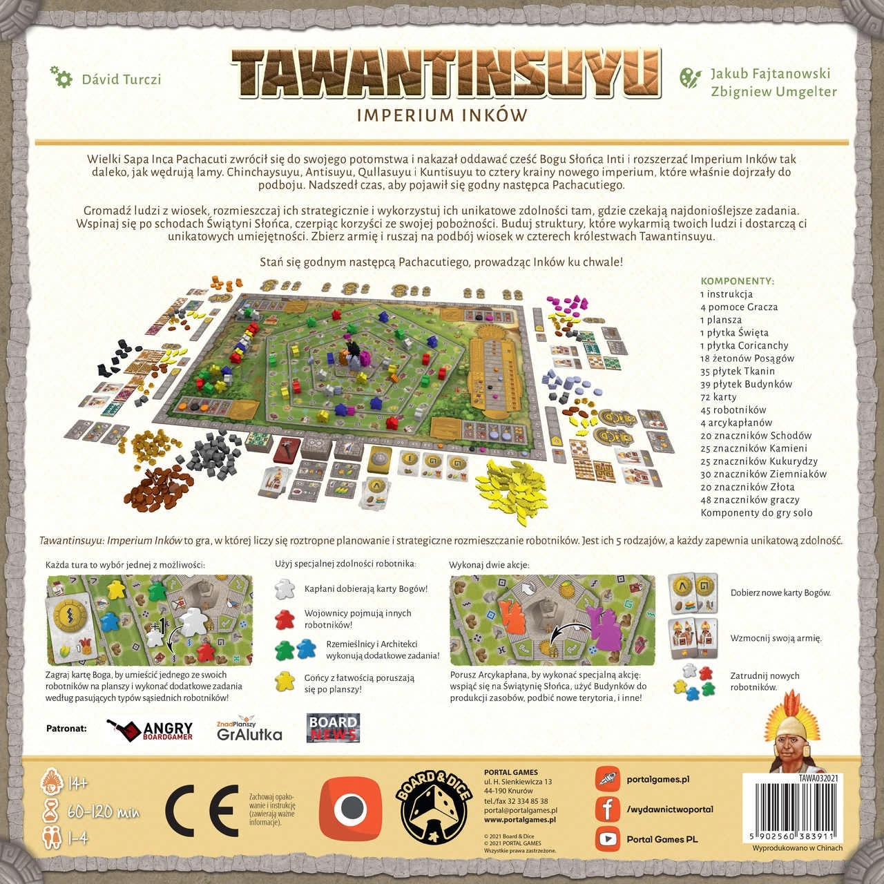 Tawantinsuyu: Imperium Inków to rozbudowana gra strategiczna typu euro autorstwa Dávida Turcziego, znanego z takich tytułów jak Anachrony czy Tekhenu. Gra łączy w sobie mechanikę rondla, zarządzanie robotnikami oraz tryb jednoosobowy. Gracze wcielają się w przywódców inkaskich plemion, które rywalizują o władzę po legendarnym władcy – Pachacutecu. Produkcja ta, podobnie jak Teotihuacan czy Tzolkin, przenosi graczy do świata starożytnych cywilizacji Ameryki Południowej.