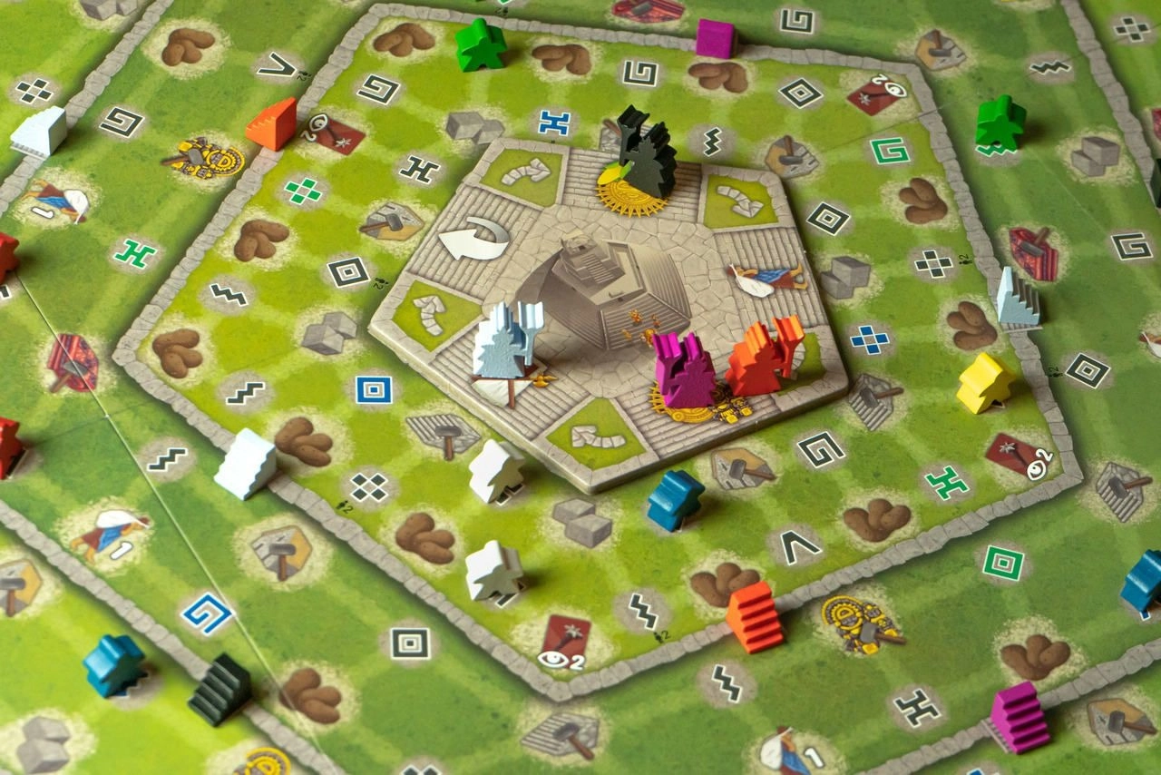 Budowa schodów umożliwia dostęp do niższych, bogatszych w zasoby tarasów, natomiast wznoszenie budynków zapewnia trwałe bonusy aktywowane przy określonych akcjach. Zakupione tkaniny można przekształcać w gobeliny, wykorzystując mechanikę kolekcjonowania zestawów (SET collection). Posągi bogów z kolei zwiększają efektywność rozmieszczania robotników i pozwalają zdobywać przewagę na Torze Świątyni, zbliżając graczy do zwycięstwa.