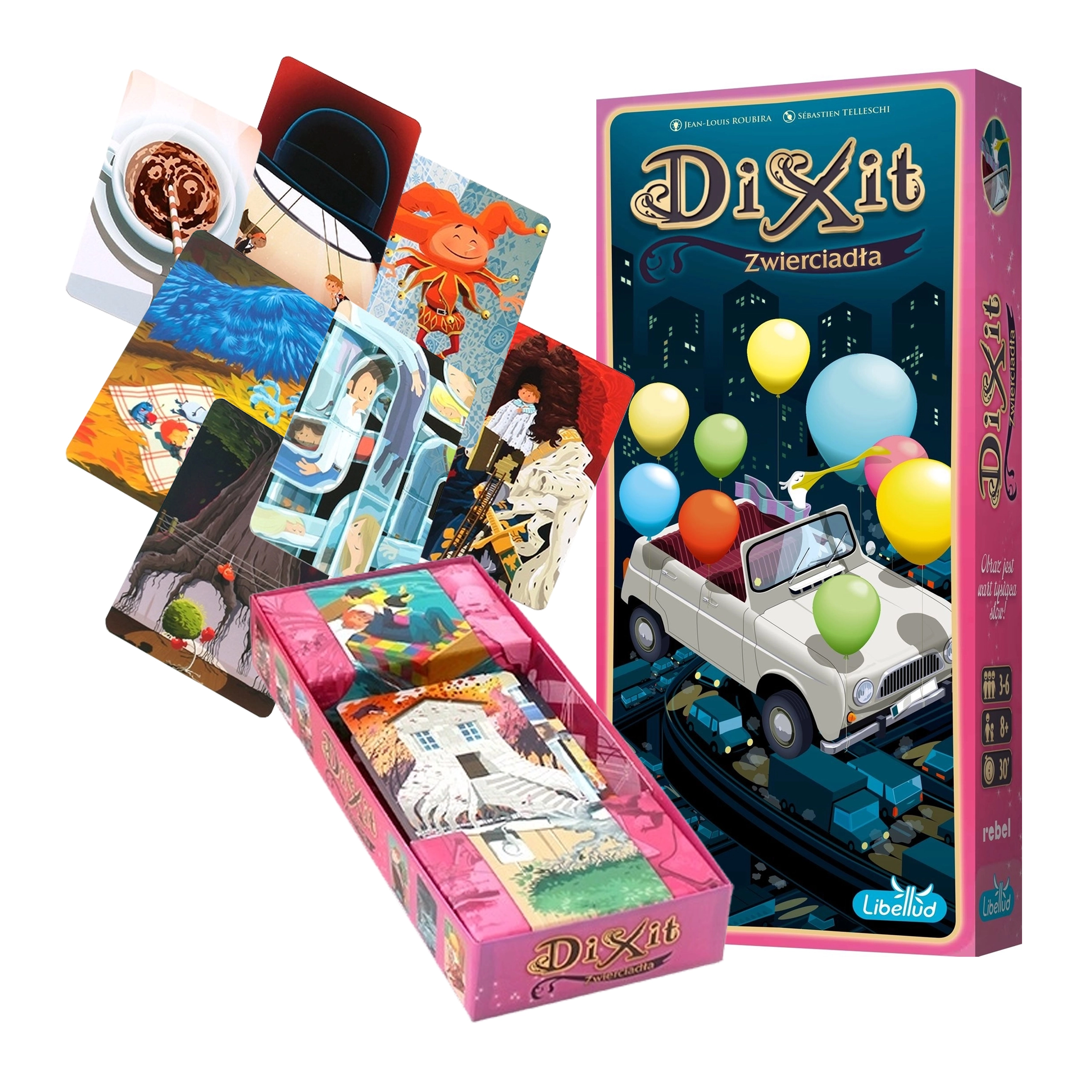 Dixit 10. Zwierciadła to niezależny dodatek do popularnej gry Dixit, zawierający 84 oryginalne karty o różnorodnej tematyce. Rozgrywka polega na odgadywaniu skojarzeń osoby prowadzącej. Ta wybiera jedną kartę ze swojej talii i podaje hasło najlepiej oddające jej obraz – może to być słowo, przysłowie, cytat czy fragment piosenki. Następnie pozostali gracze wybierają po jednej karcie pasującej do hasła, a po odkryciu wszystkich kart starają się odgadnąć, która była pierwotną wskazówką. Ograniczeniem jest wyłącznie wyobraźnia uczestników.
