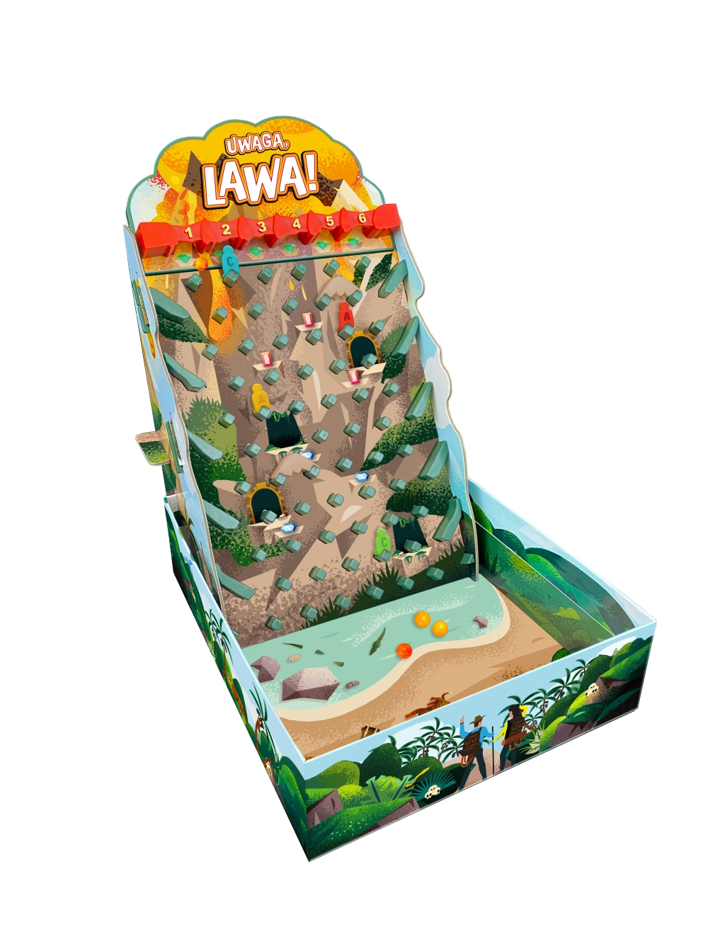 Dodatkowym atutem jest pionowa plansza, która wprowadza świeżość i emocje do rozgrywki. Interakcja między graczami, próby zrzucenia przeciwników i wyścig po szczyt wulkanu sprawiają, że każda partia dostarcza mnóstwo śmiechu i adrenaliny.