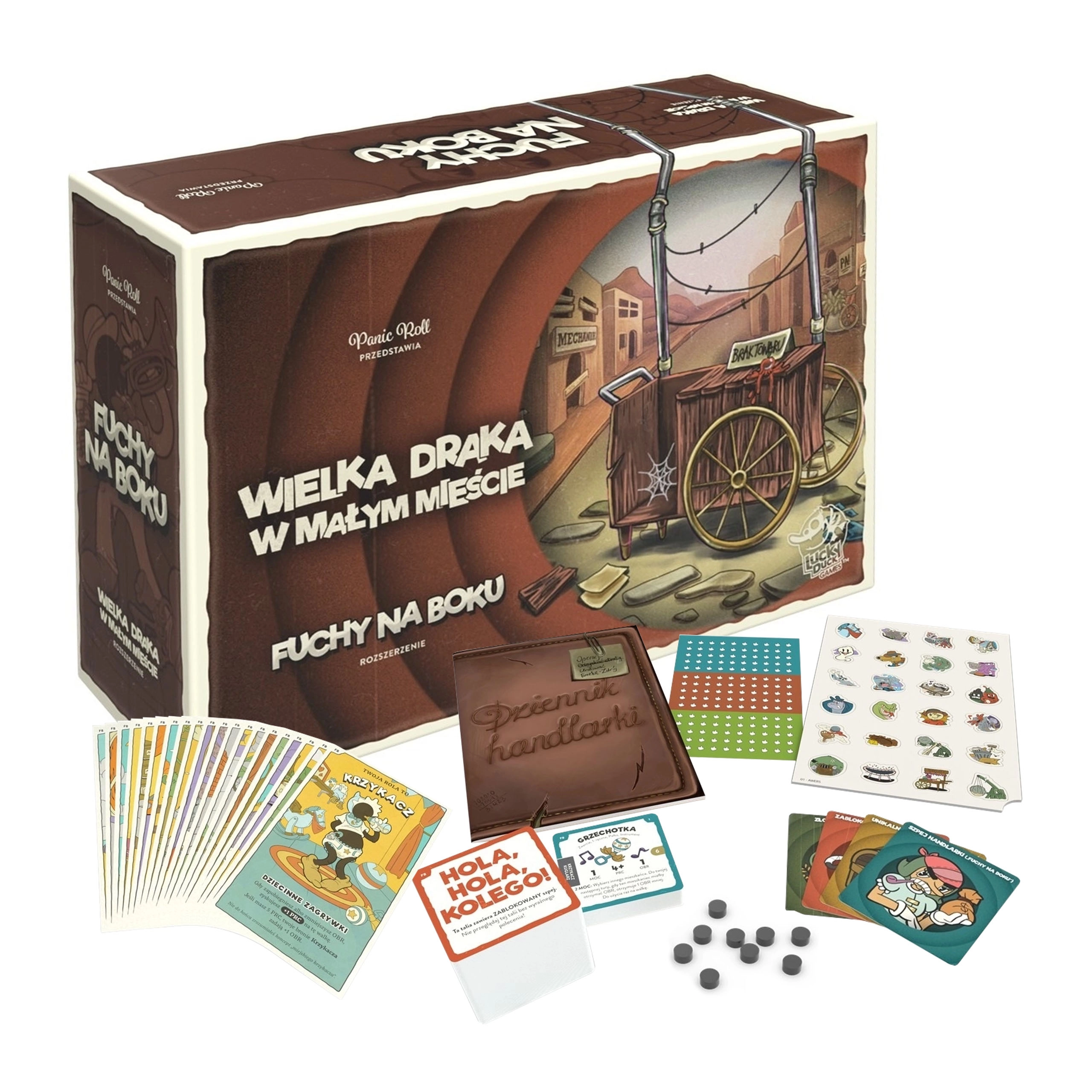 W dodatku Fuchy na boku pomożesz handlarce odbudować jej kram oraz przejąć role porzucone przez mieszkańców. Rozszerzenie wprowadza świeży zestaw kart handlarki, który przesuwa akcent rozgrywki na wyposażenie i wzajemne powiązania między poszczególnymi elementami szpeju.