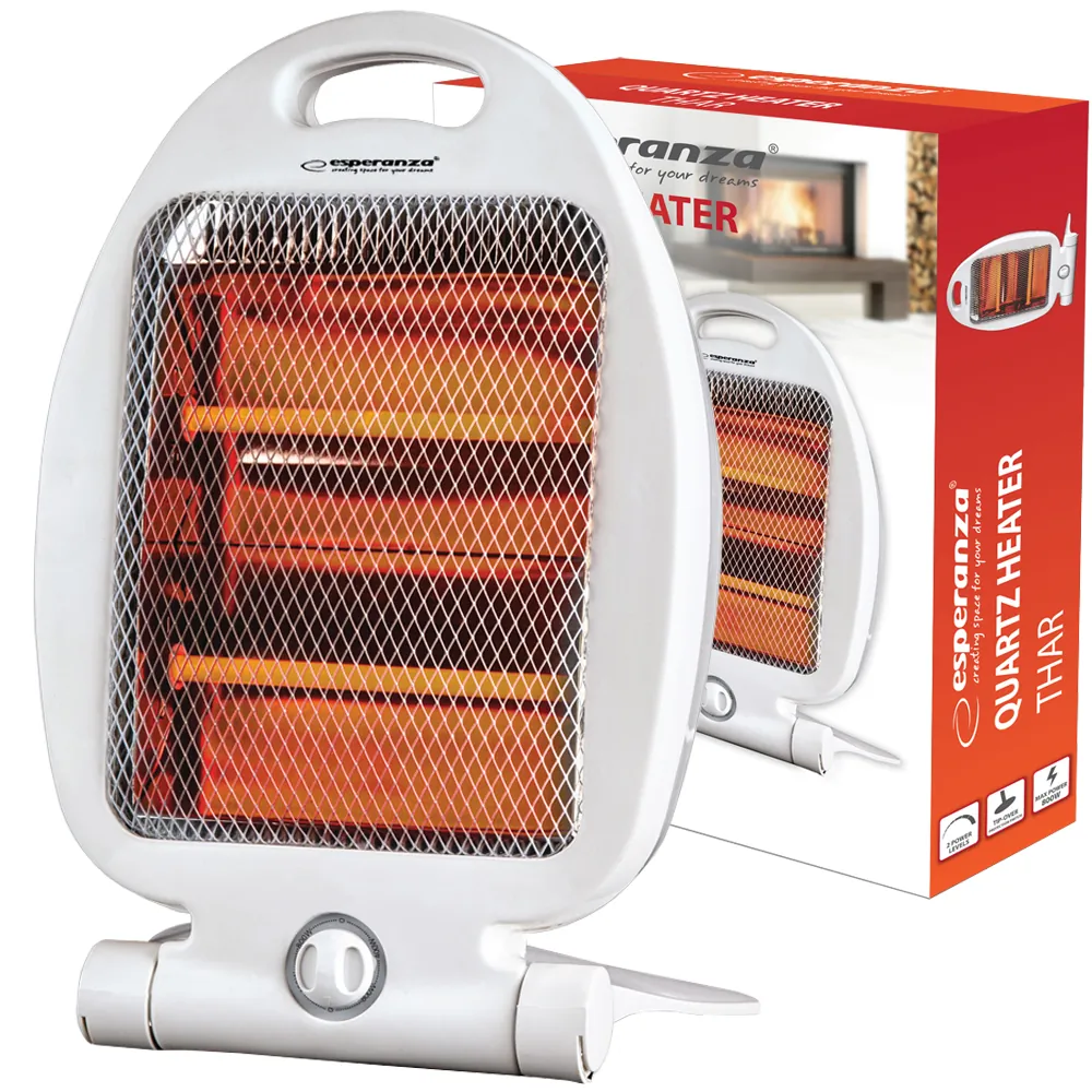 Niewielkie, ale bardzo wydajne urządzenieGrzejnik kwarcowy Esperanza Thar o mocy 800W to niewielkie, ale bardzo wydajne urządzenie, dzięki któremu szybko zwiększysz temperaturę w pomieszczeniu. Grzejnik posiada dwie lampy kwarcowe (o mocy 400W każda), które mogą działać jednocześnie, oprócz tego możesz też zdecydować o uruchomieniu tylko jednej z nich, jeśli nie ma potrzeby grzania z maksymalną mocą. Grzejnik kwarcowy posiada system odcinający dopływ prądu w przypadku przewrócenia urządzenia. Oprócz tego dzięki wygodnemu uchwytowi i rozmiarowi jest go łatwo przenosić pomiędzy pomieszczeniami. |