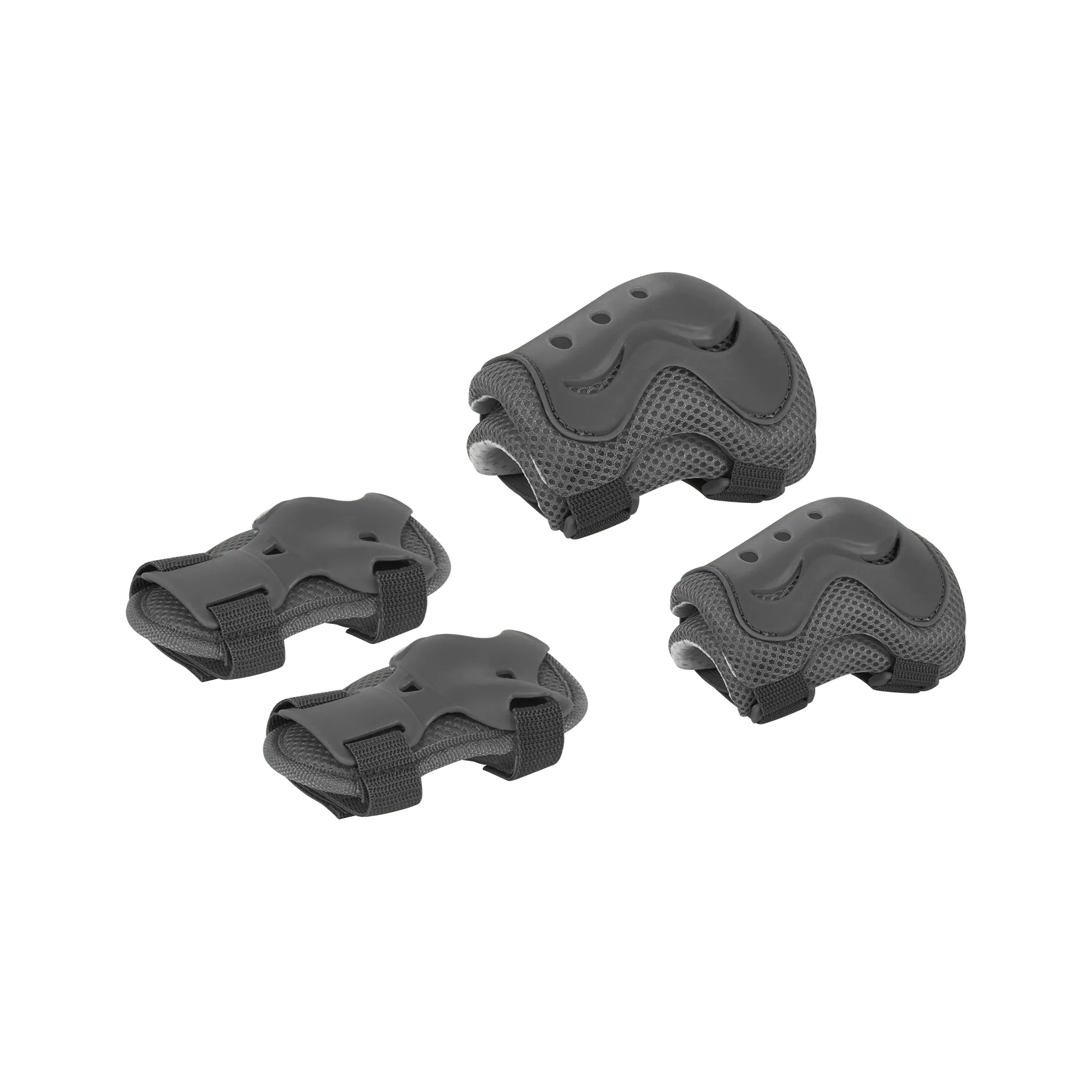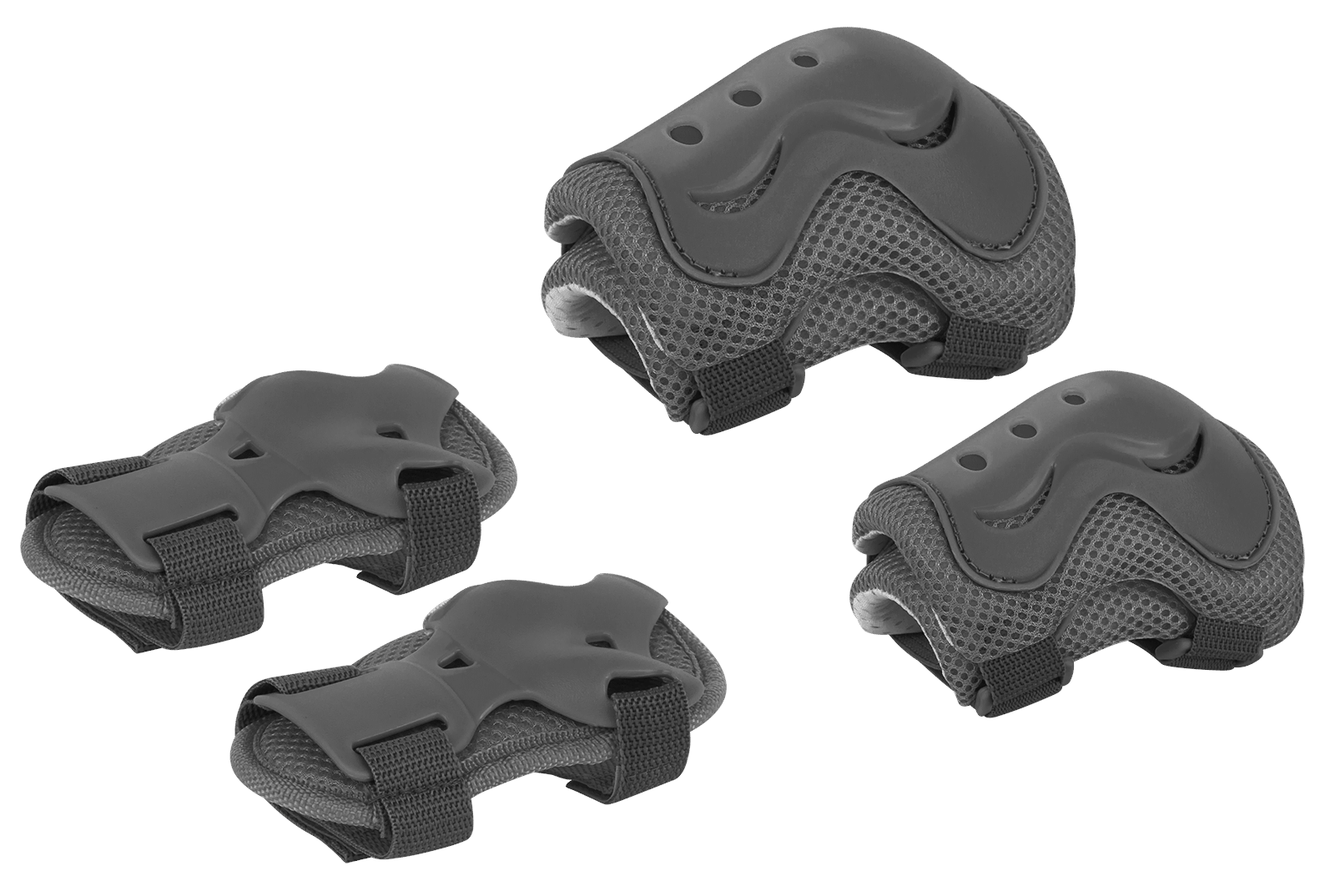 Komplet ochraniaczy na rolki, rower lub deskorolkęSolidne, komfortowe ochraniacze zapewniające podstawową ochronę podczas rekreacyjnej jazdy na rolkach, deskorolce, czy hulajnodze. Wytrzymałe protektory z tworzywa sztucznego chronią przed urazami i kontuzjami w razie ewentualnego upadku. Wygodna nylonowa gąbka zapewnia komfort użytkowania, natomiast zapięcie na rzepy umożliwia precyzyjne dopasowanie ochraniaczy do sylwetki. Ochraniacze są bardzo wygodne i nie zsuwają się podczas jazdy. Kształt podkowy nakolanników minimalizuje przesunięcia i przesuwanie w dół, aby utrzymać ochraniacz na miejscu podczas akcji. |