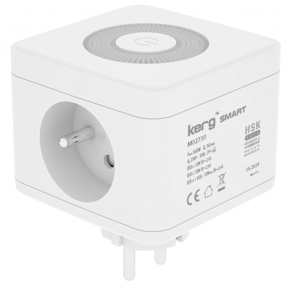 Wbudowana lampka LED z trzema poziomami jasności sterowanymi dotykowo to praktyczny dodatek, który idealnie sprawdzi się jako oświetlenie nocne lub biurkowe. Dzięki możliwości regulacji natężenia światła z łatwością dopasujesz je do swoich potrzeb – od delikatnego podświetlenia po pełniejsze oświetlenie przestrzeni. Kostka posiada kołki ochronne połączone z przewodem ochronnym, gwarantujące bezpieczne użytkowanie urządzeń. Nowoczesny, biały design sprawia, że KERG Smart doskonale wpasuje się w każde wnętrze, łącząc elegancję z funkcjonalnością.