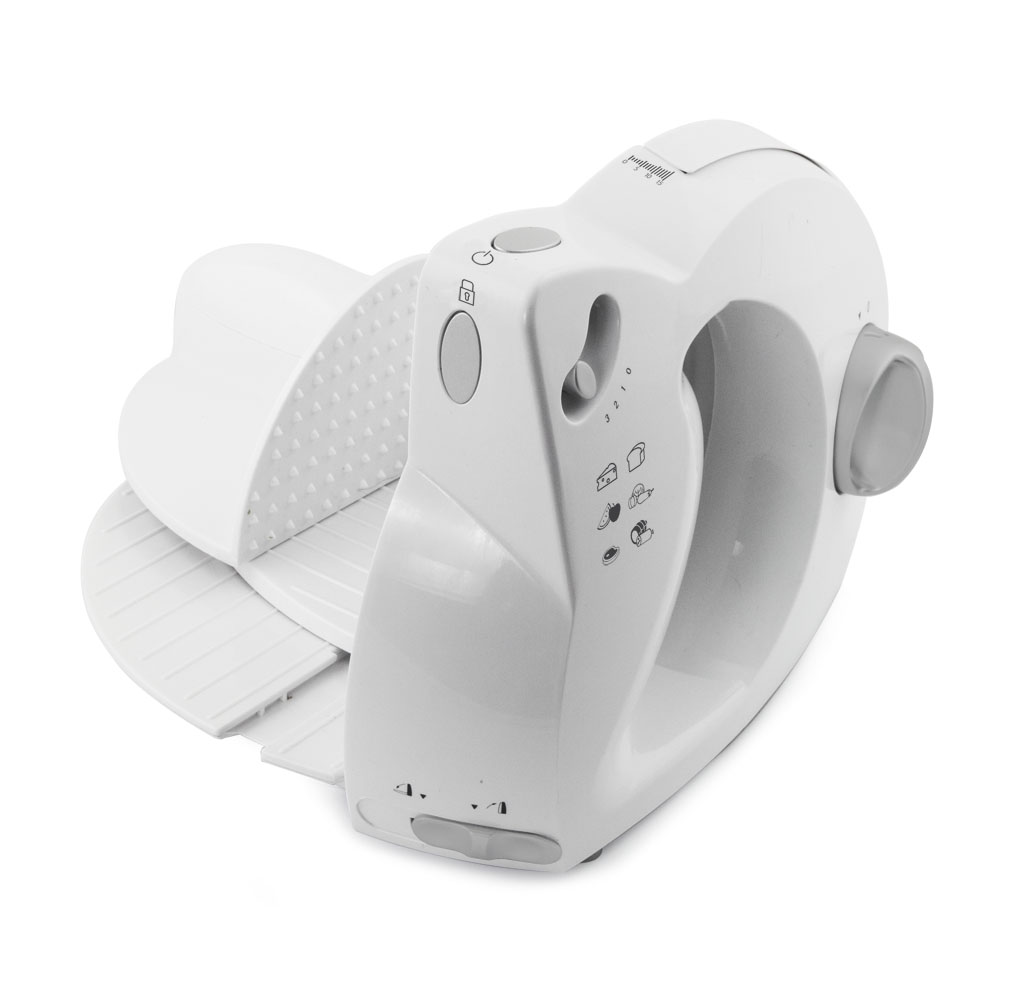 Wygoda i bezpieczeństwoWygodna i bezpieczna krajalnica z wysuwanym stolikiem i zdejmowanym popychaczem. Wysokiej jakości ostrze ze stali szlachetnej pozwala zarówno ciąć wędlinę w cienkie plastry jak i ukroić sobie solidną pajdę wiejskiego chleba. Grubość krojenia może być dowolnie regulowana, co jest ułatwione przez wyraźny wskaźnik aktualnego ustawienia. Całość łatwo rozłożyć na elementy, co znacznie upraszcza czyszczenie, szczególnie że samo ostrze czy stolik mogą być umieszczone bezpiecznie w zmywarce do naczyń. |