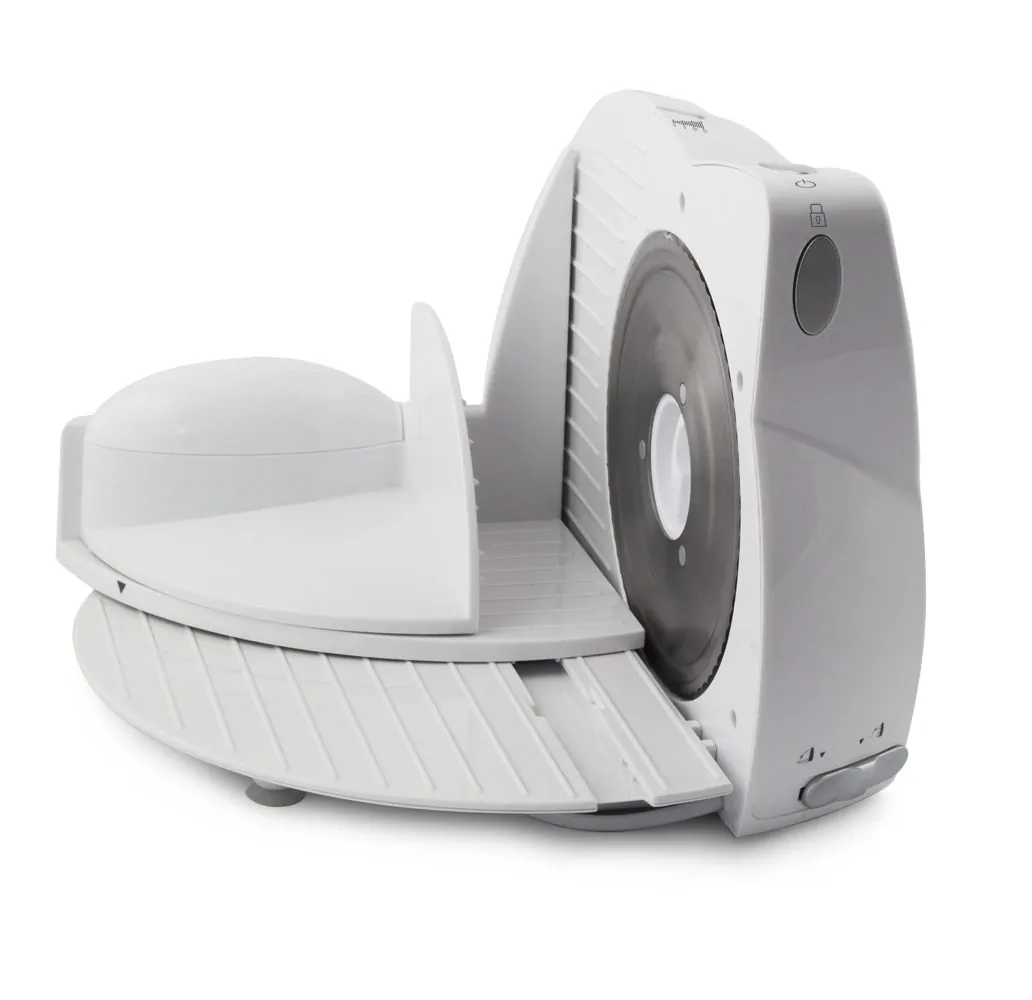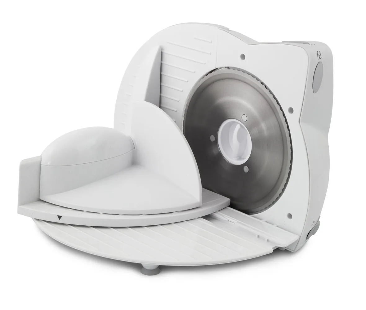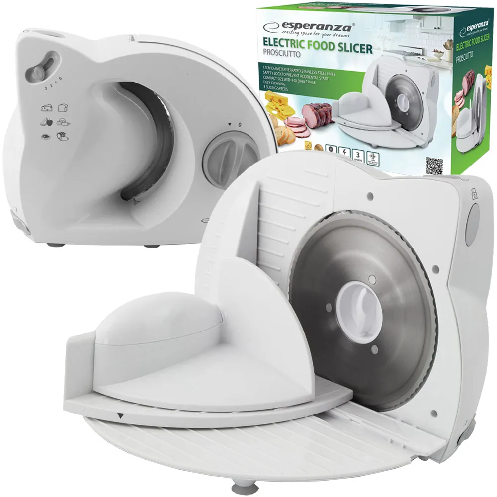 Krajalnica EsperanzaDzięki szerokiej regulacji grubości plasterka naszą krajalnicą, pokroisz pieczywo, wędliny, ser, owoce czy warzywa w równe plastry tej samej grubości. Urządzenie posiada ergonomiczny kształt, a zastosowany desing sprawia, iż łatwo dopasujesz produkt do wystroju swojej kuchni. Przyssawki anty-poślizgowe zapewniają stabilną i komfortową pracę. Przypadkowe uruchomienie krajalnicy nie jest możliwe, dzięki blokadzie bezpieczeństwa. |