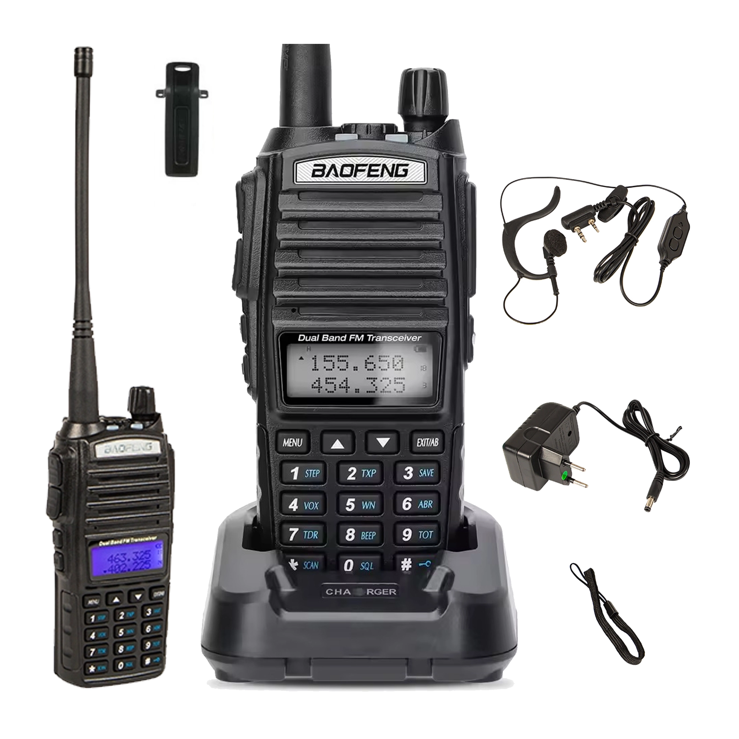 Radiotelefon Baofeng to profesjonalne radio PMR, stworzone z myślą o użytkownikach potrzebujących stabilnego i szerokozasięgowego połączenia głosowego. W odróżnieniu od standardowych krótkofalówek, model ten pracuje w dwóch pasmach (VHF 136–173 MHz / UHF 400–519 MHz), co przekłada się na lepszą jakość oraz większy zasięg komunikacji. Solidna obudowa i wydajna bateria o pojemności 2000 mAh, wspierana inteligentnym systemem zarządzania energią, umożliwiają intensywne użytkowanie nawet przez cały dzień bez konieczności częstego ładowania.