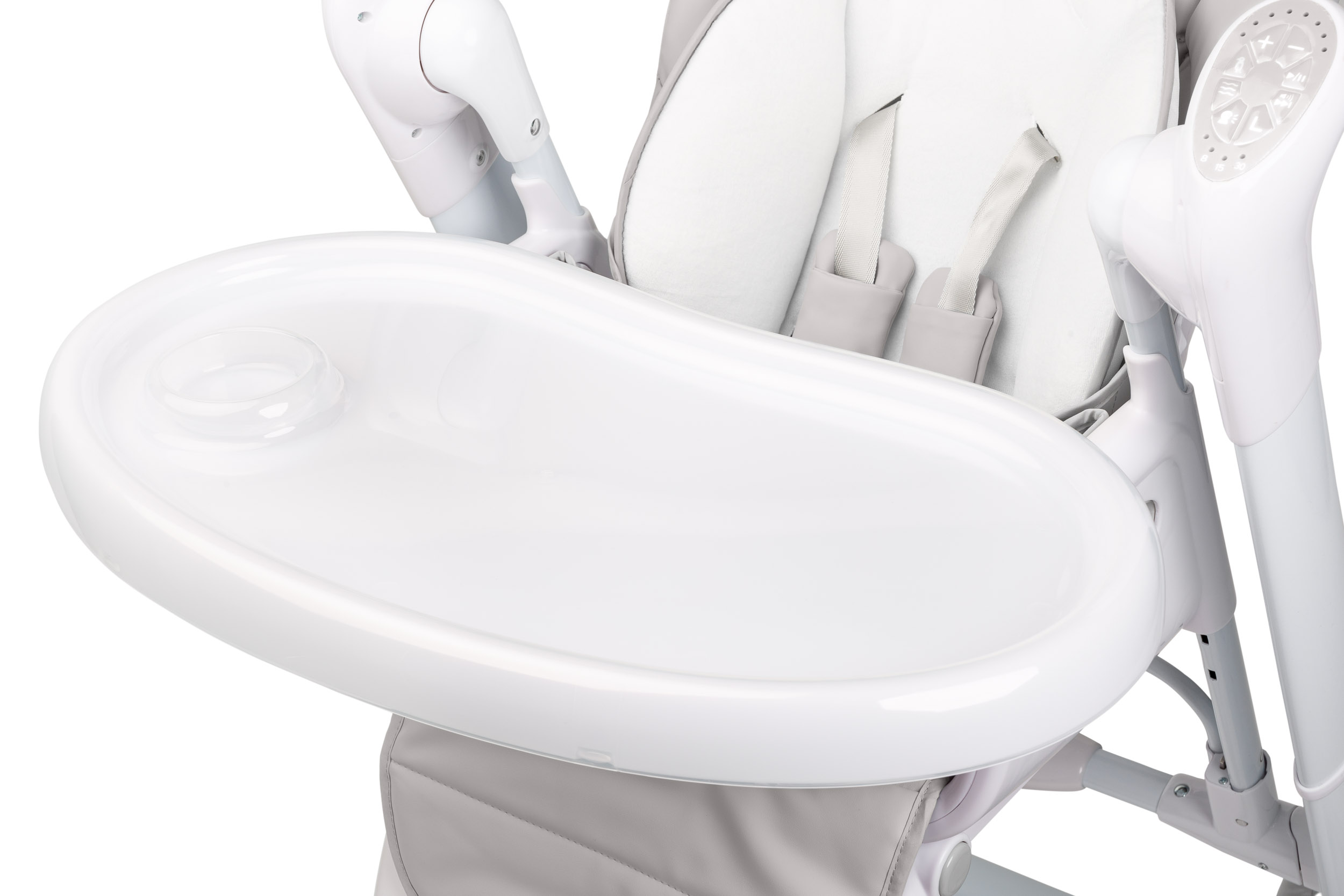 Na tacy znajduje się dodatkowa zdejmowana nakładka do spożywania posiłków. Nakładka jest bardzo łatwa w czyszczeniu – z powodzeniem można myć ją w standardowej zmywarce.