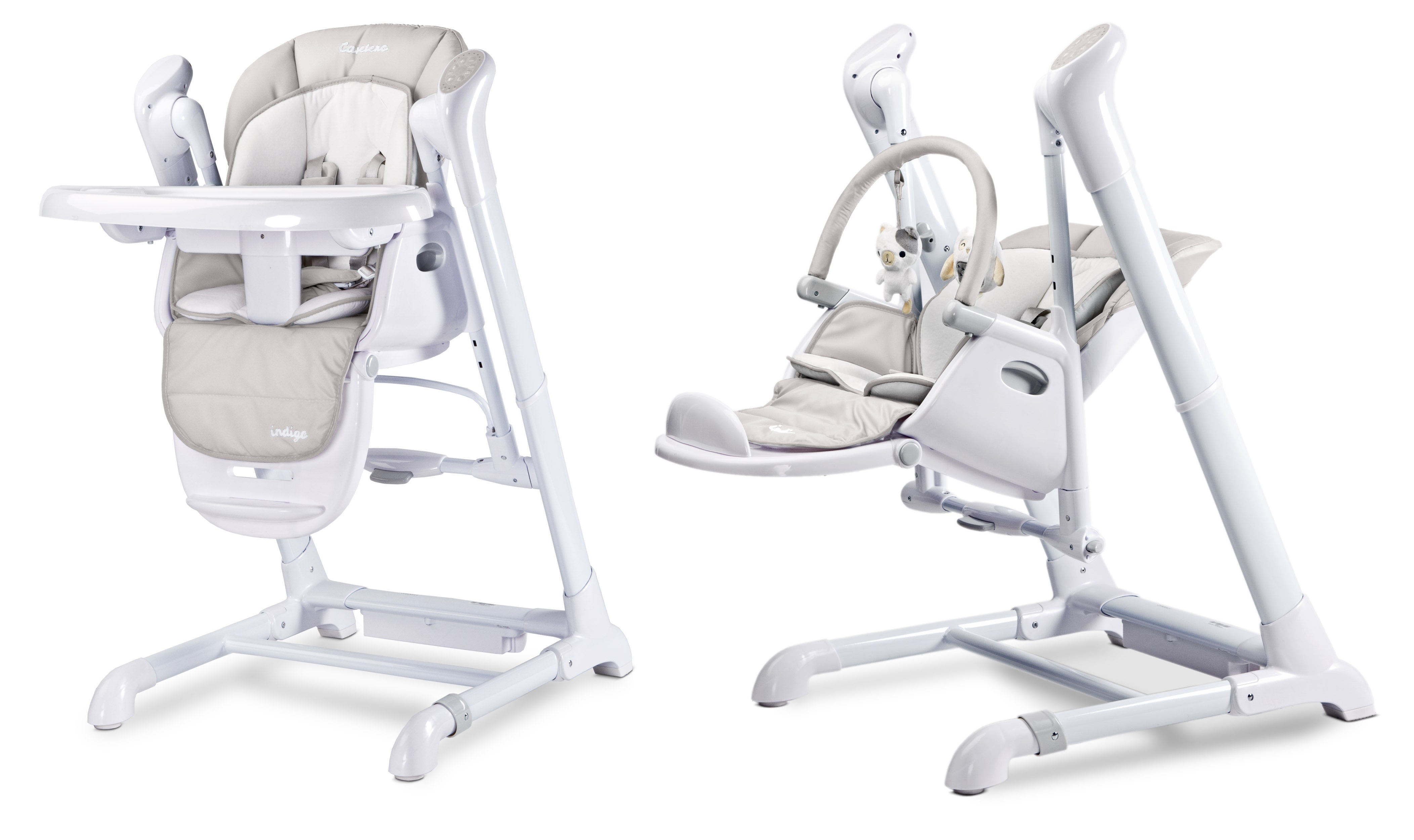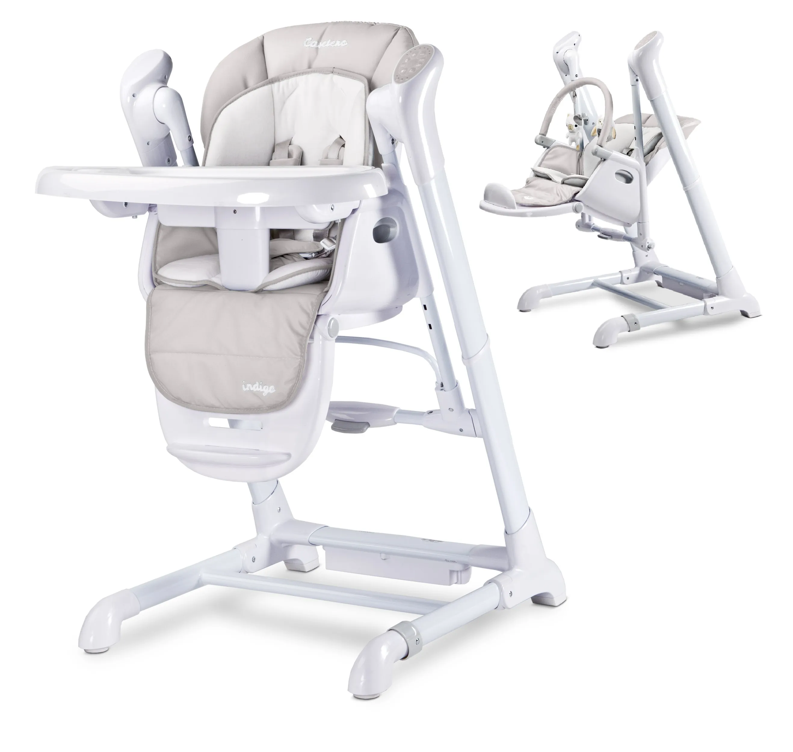 Krzesełko do karmienia huśtawka 2w1 Caretero INDIGO - jasno szare