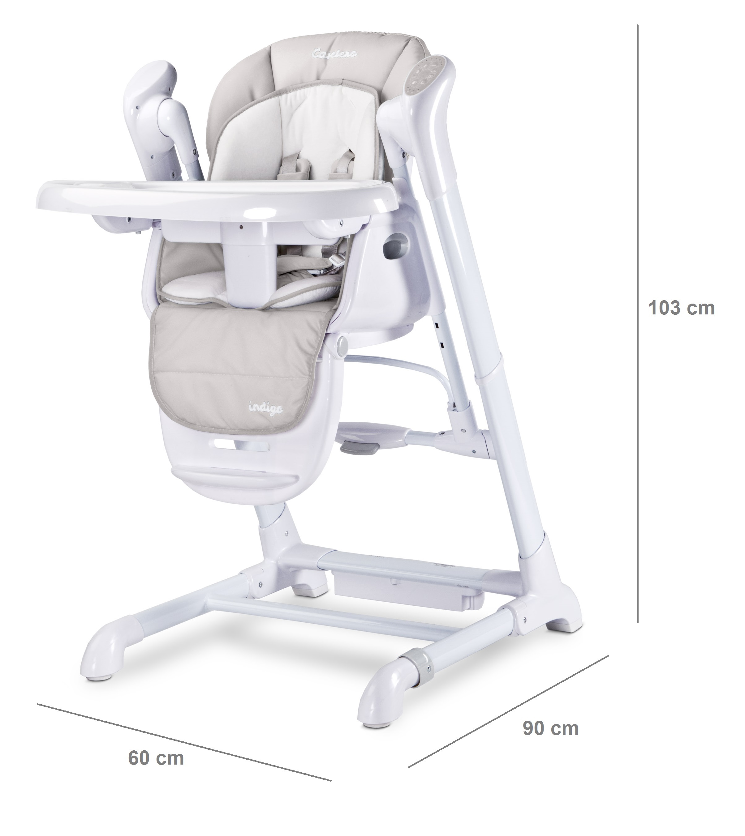 Krzesełko do karmienia 2w1 Caretero Indigo - jasno szare