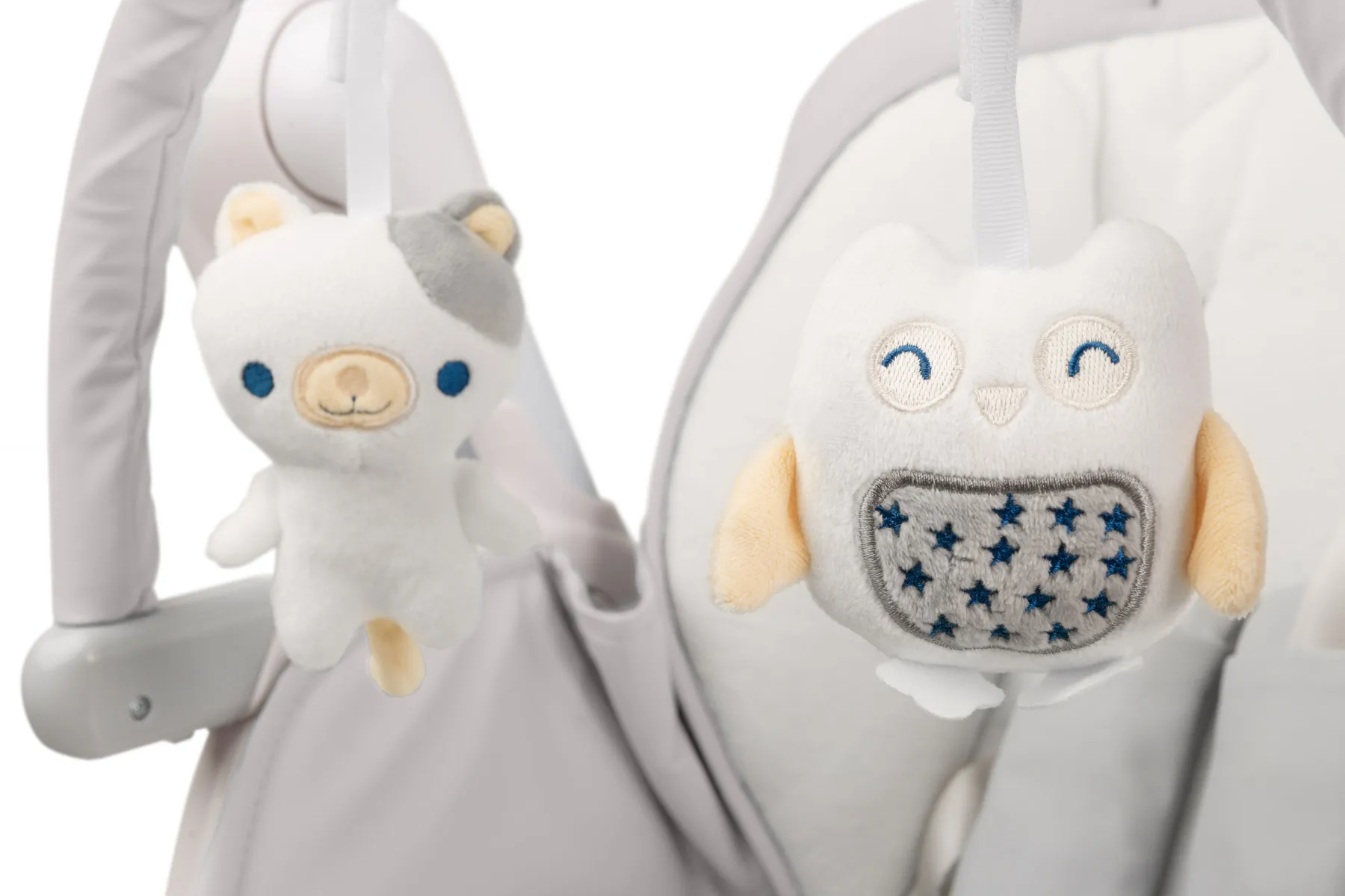 Odpinany pałąk z pluszowymi zabawkami wpływa pozytywnie na rozwój wyobraźni, motoryki i umiejętności przestrzennych naszej pociechy już od pierwszych dni życia. Uśmiechnięte maskotki zapewnią maluszkowi dobry humor i poczucie bezpieczeństwa.