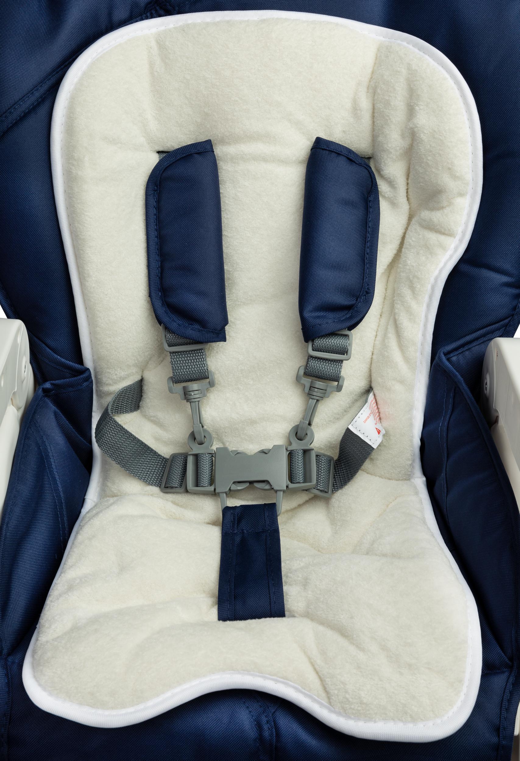 W zestawie znajduje się wygodna wkładka, która zapewnia mniejszym dzieciom lepsze dopasowanie do krzesełka.