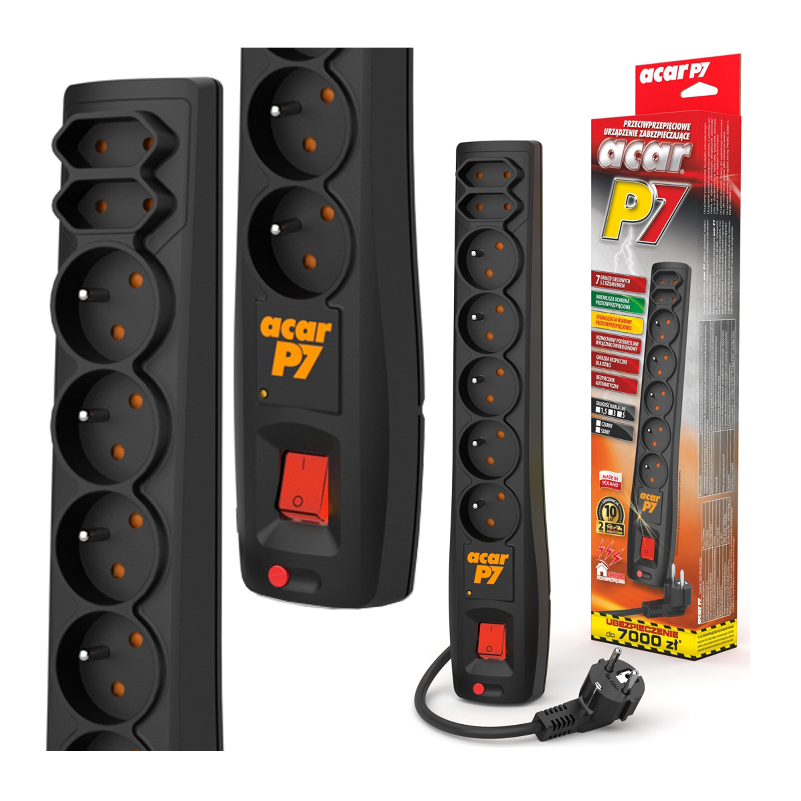 LISTWA ZASILAJĄCA Z BEZPIECZNIKIEMP7 to zabezpieczenie przeciwprzepięciowe aż siedmiu urządzeń. Pięć gniazd z bolcem i dodatkowo dwa gniazda płaskie. Podświetlany wyłącznik, wygodny automatyczny bezpiecznik, cztery możliwe kierunki ułożenia sznura sieciowego jako system porządkowania przewodów to koniec plątaniny kabli oraz niska cena gwarantują najbardziej trafny wybór do biura i domu. |