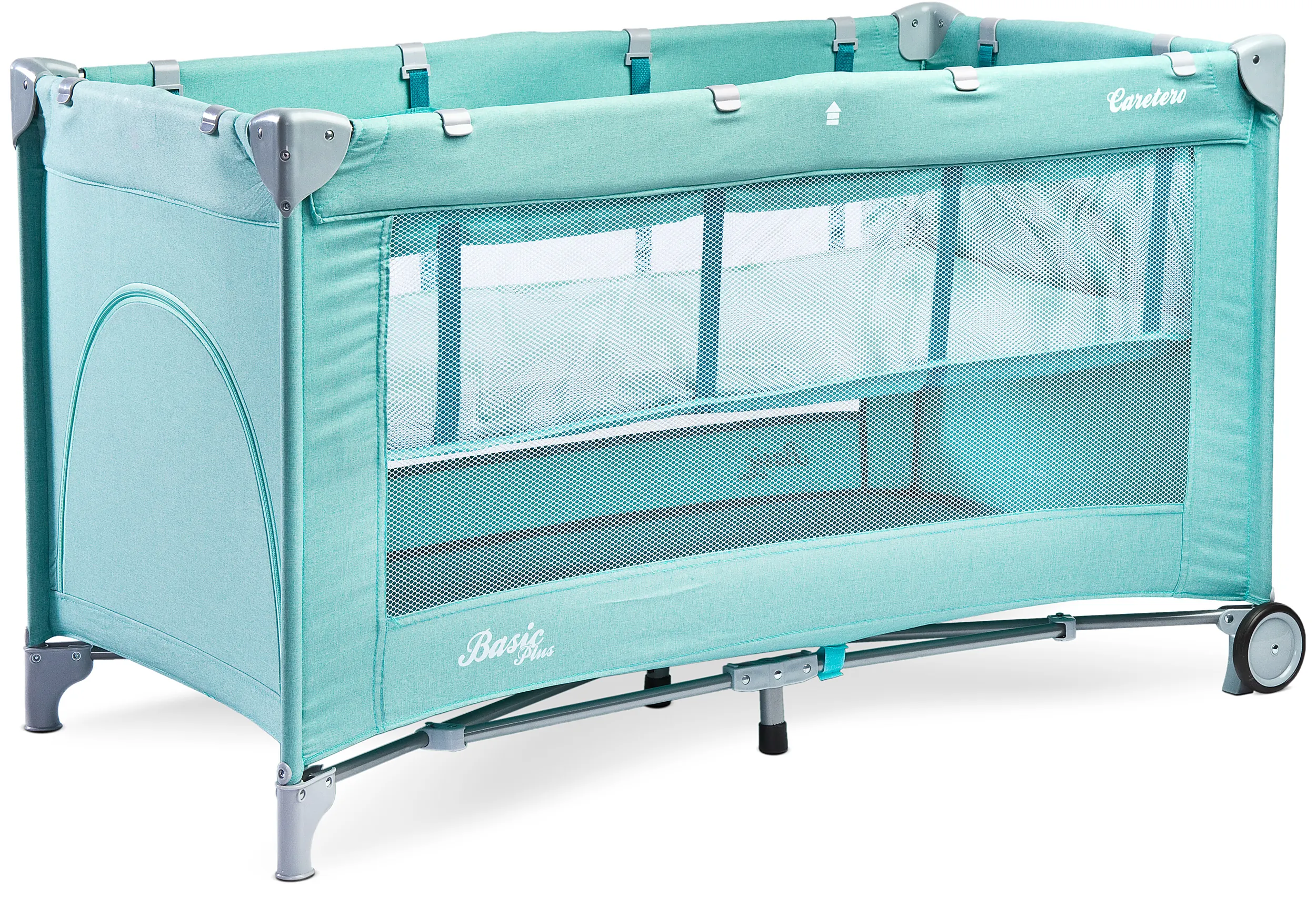 Kojec Caretero Basic PLUSDzięki sprytnym modyfikacjom łóżeczko Basic stało się jeszcze lepsze i wyszło na Plusa. Najważniejsza z tych zmian to podwieszana podłoga. Ułatwi ona opiekę nad najmłodszymi. Rodzic może wyjmować maluszka bez nadmiernego obciążania kręgosłupa. Podnosi to bezpieczeństwo mamy lub taty oraz dziecka. Innym udogodnieniem są kółka, który dodaliśmy do jednej pary nóżek, podnosząc tym samym mobilność łóżeczka. Można je teraz wygodnie przemieścić m.in. bez konieczności składania. Wrażenia estetyczne podnosi natomiast zastosowanie melanżowego materiału. Łóżeczko wyposażone jest w materacyk o wymiarach 120 x 60 cm oraz torbę transportową, które idealnie sprawdzą się w warunkach turystycznych. Ze wszystkimi akcesoriami waży niecałe 9 kg!