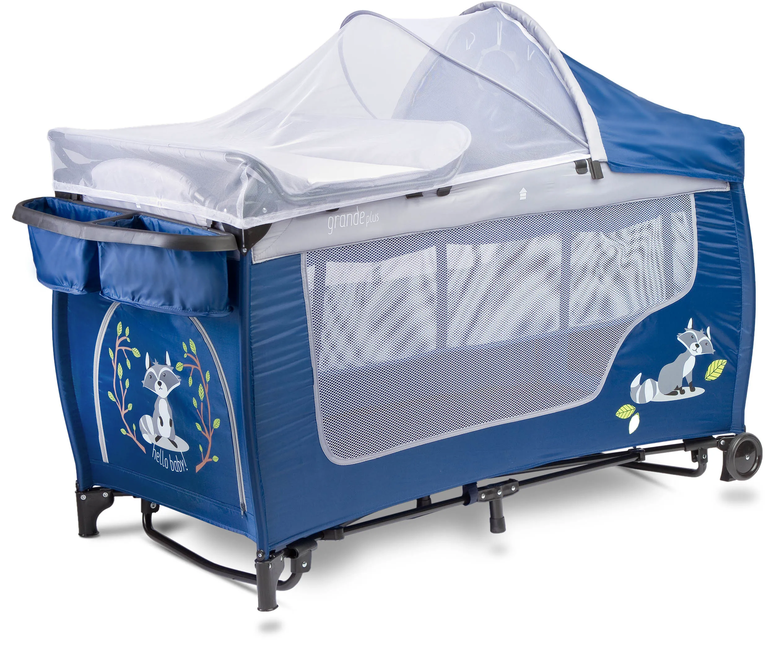 Łóżeczko turystyczne Caretero GRANDE PLUS kojec + torba + moskitiera + przewijak + organizer + zabawki - granatowe