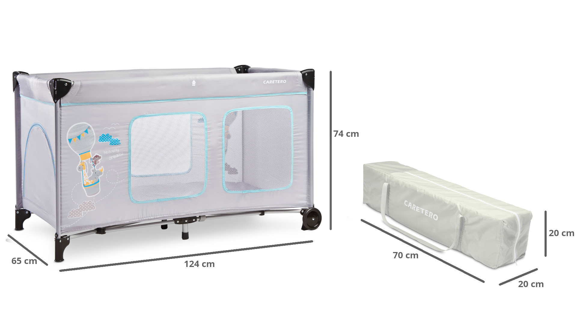 Łóżeczko turystyczne Caretero SIMPLO PLUS kojec + torba - szare