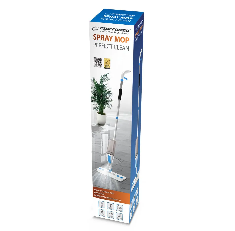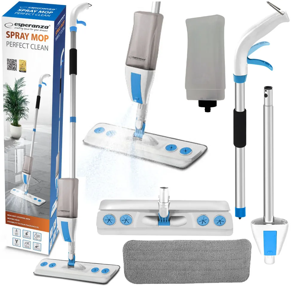 Dzięki pojemnemu zbiornikowi umieszczonemu na mopie możesz dozować płyn podczas pracy. Aby rozpocząć spryskiwanie, wystarczy nacisnąć przycisk umieszczony w rączce. Szeroka mgła ze spryskiwacza pokrywająca obszar przed mopem. Zbiornik jest łatwy do wyjęcia w celu ponownego napełnienia. Dodatkowo wo buteleczki można dolać olejku zapachowego, dzięki czemu w Twoim domu nie tylko zagoszczą lśniące podłogi, ale i rozprzestrzeni się piękny zapach. Mikrofibrę można wymienić na ściereczkę lub ręcznik papierowy za pomocą 4 silikonowych uchwytów na płytce z rzepem. Dzięki Esperanza Perfect Clean Twój dom może lśnić w jednej sekundzie!