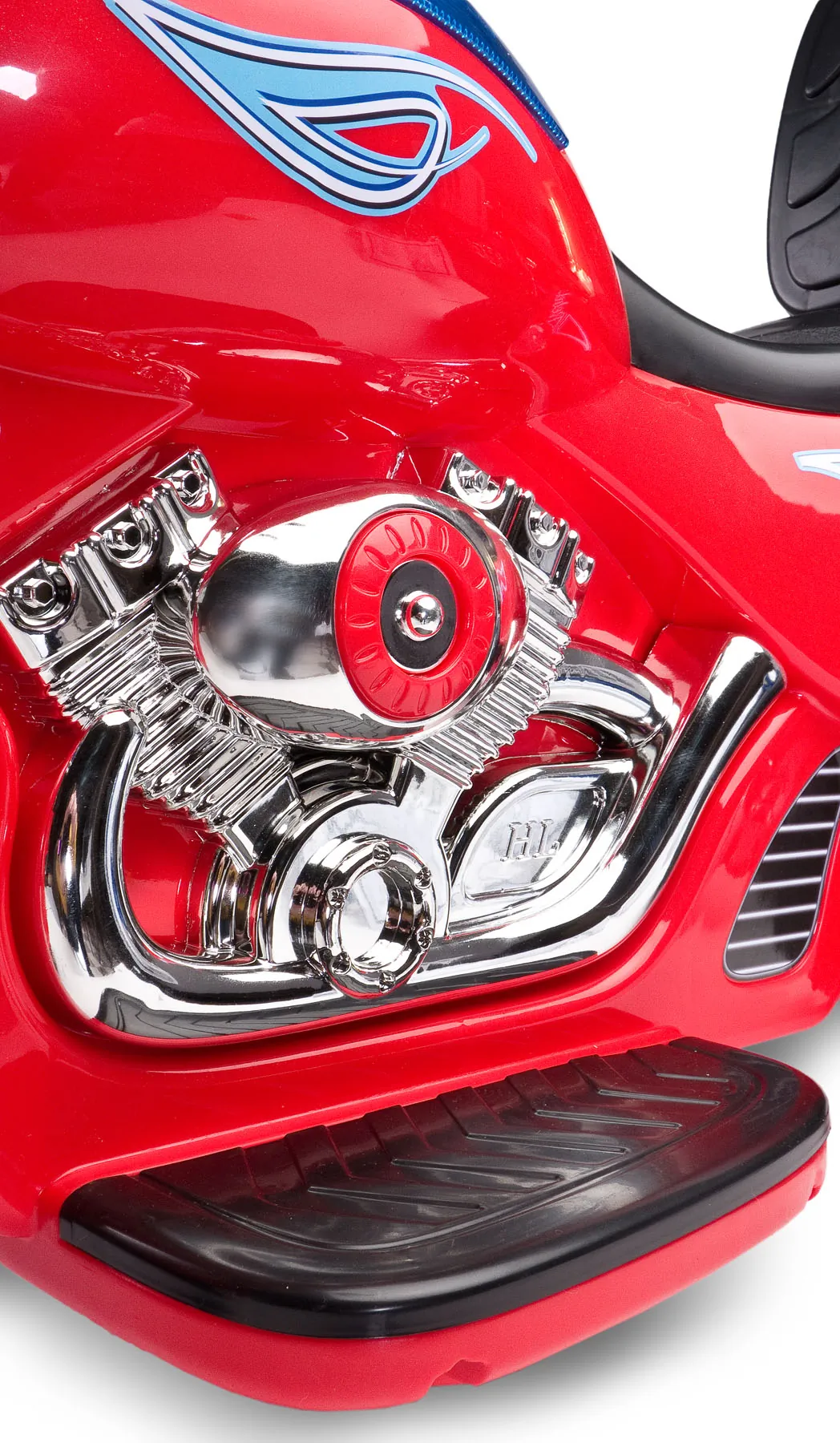 Dodatkowym atutem motocykla są efektowne światła LED, które znajdują się na przodzie i po bokach motocykla. Na pewno Twoje dziecko zrobi wrażenie na wszystkich kolegach z placu zabaw, gdy przyjedzie takim sprzętem.