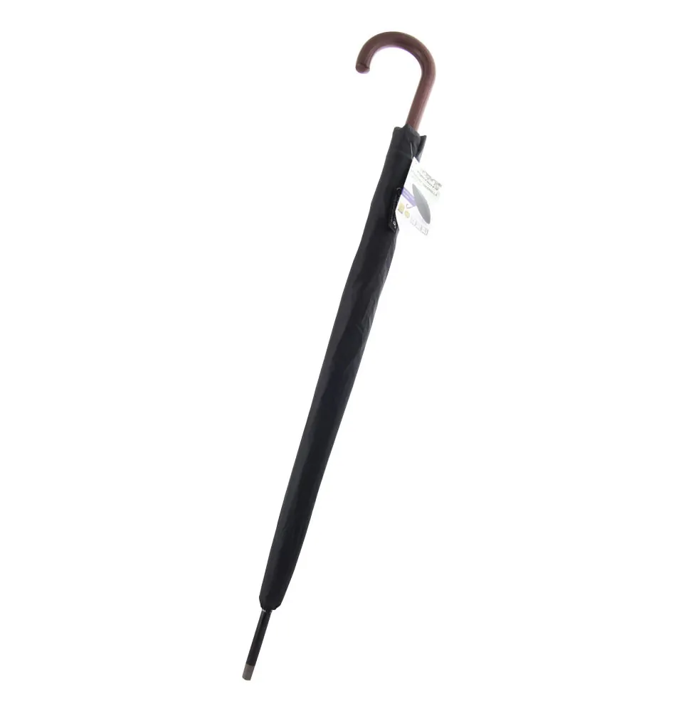 Duży, komfortowy parasol prosty, z automatycznym mechanizmem otwierającym. Czaszę parasola zrobiono z wodoodpornego poliestru. Trzon parasola wykonany z zabarwionego na czarno metalu Konstrukcja 16-to ramienna - najwyższa odporność na silne podmuchy wiatru. Żebra długie zostały zrobione z włókna szklanego, a krótkie z metalu. Rękojeść parasola wykonano z wysokiej jakości tworzywa sztucznego w atrakcyjnej kolorystyce drewnopodobnej.