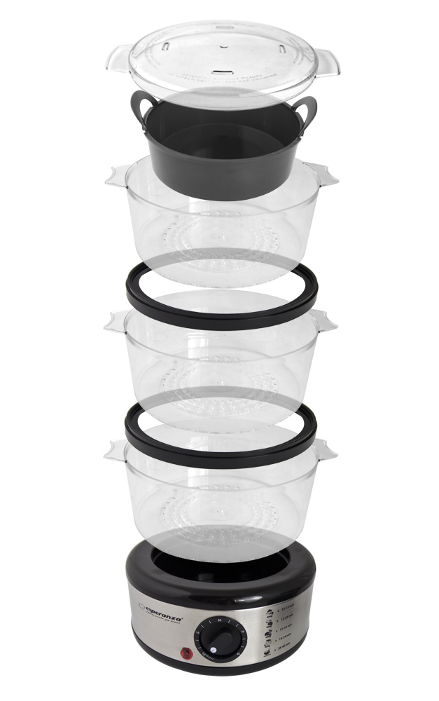 Funkcjonalność i jakość wykonaniaTrzy pojemniki o dużej pojemności umożliwiają jednoczesne gotowanie kilku różnych dań. Wbudowany minutnik odliczający czas gotowania ułatwia proces gotowania. Dzięki prostej budowie obsługa i czyszczenie parowaru są bardzo łatwe. Posiłki gotowane na parze są zalecane przez dietetyków. Mają szczególne znaczenie dla osób z problemami z układem pokarmowym oraz wszystkich, którzy dbają o swoją sylwetkę. |