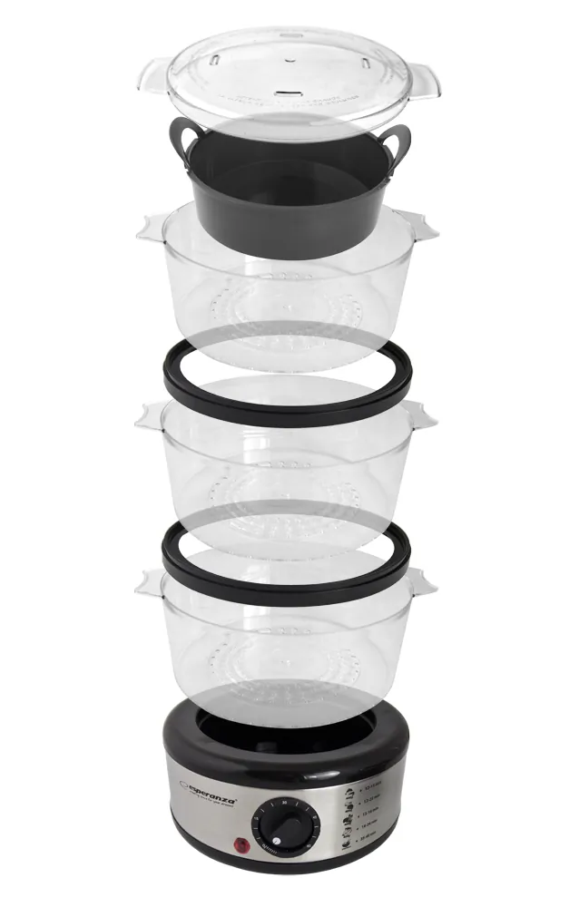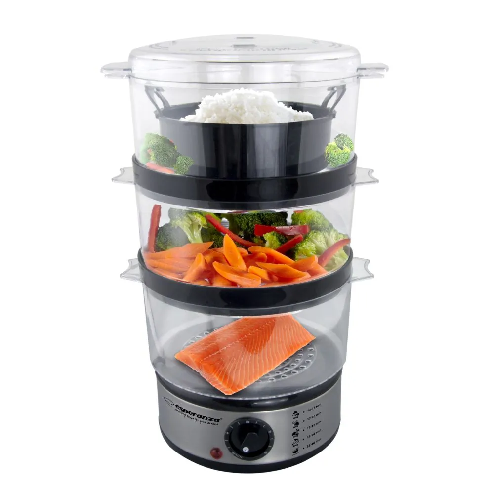 Urządzenie do gotowania na parze EsperanzaParowar Esperanza STEAM VOLCANO to niezastąpione urządzenie w każdej kuchni. Pozwala szybko przygotować nawet kilka dań w tym samym czasie, zachowując przy tym ich naturalny zapach i smak. W porównaniu do dań gotowanych w wodzie posiłki przygotowane na parze zachowują witaminy i składniki odżywcze, co sprawia, że są bardziej wartościowe i zdrowsze. |